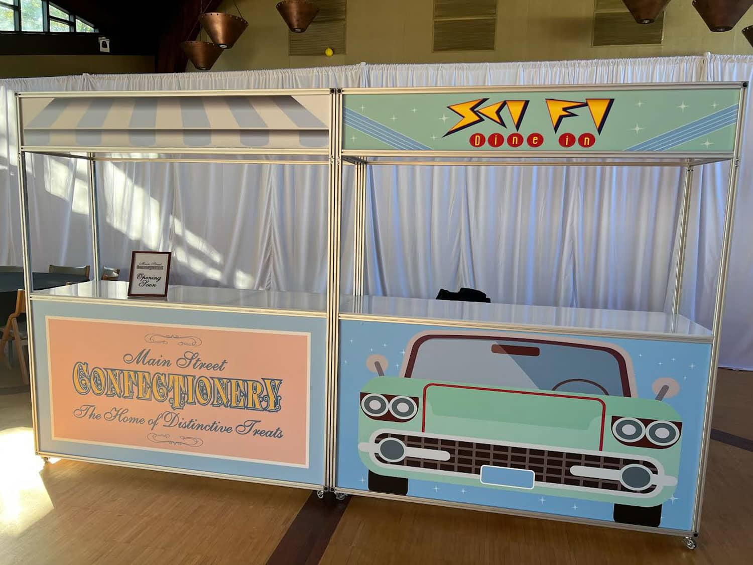 Hart to Hart’s Kiosk Rentals add functional design and branded opportunity to events across NYC, Long Island, NJ and CT. These versatile stations serve as check-in points, activation hubs, digital display stands, photo op elements or informational centers—making them ideal for Corporate Events, Bar/Bat Mitzvahs, Sweet 16s and Weddings. Each kiosk features clean structural lines and customizable surfaces, allowing seamless integration with logos, themed graphics or decorative elements that elevate your event’s visual identity.