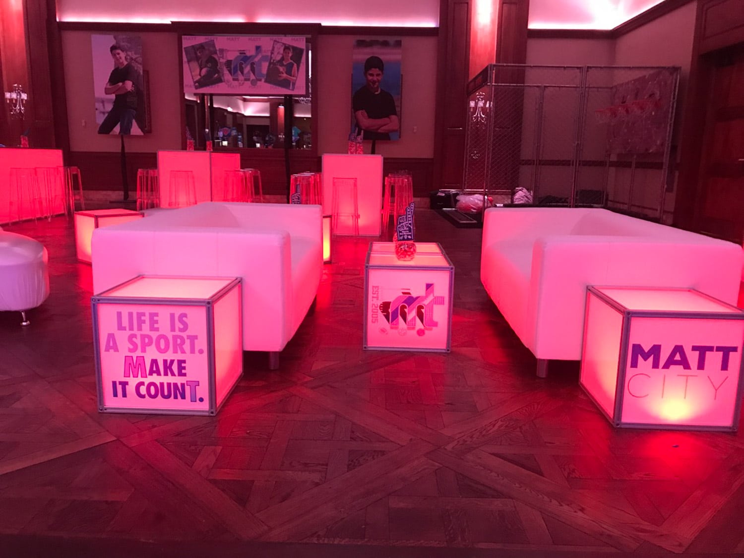 Beyond design, our printing and installation teams handle everything from concept creation to onsite application. Custom prints enhance entrances, lounge areas, bars, dance floors and staging environments while reinforcing event themes or brand messaging. Our goal is to transform your space into a polished, professional environment that reflects your personality or corporate identity. With Hart to Hart’s expertise, your branded elements become focal points that elevate decor, delight guests and leave a lasting impression long after your event ends.