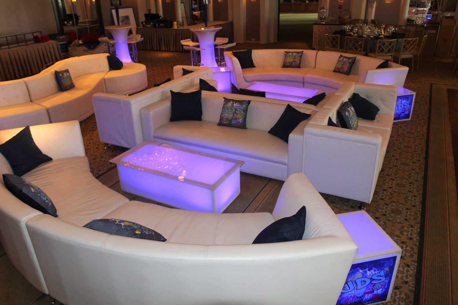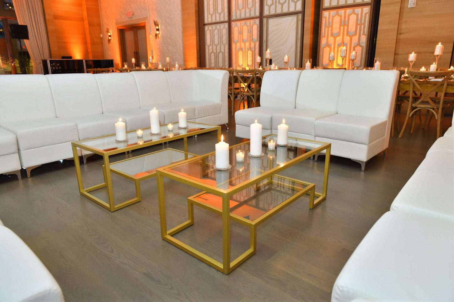 We work closely with you to select furniture styles, colors and layouts that support your event aesthetic, ensuring your lounge groupings feel intentional and cohesive. From modern white leather sets to rustic wicker, velvet, tufted seating and branded options, our lounges elevate your space with sophistication and comfort. Hart to Hart handles all delivery, installation and placement, allowing you to enjoy a seamless setup and polished final presentation. Lounge rentals not only provide essential seating but also help define your event’s ambiance through design-forward, guest-focused environments that feel inviting and memorable.