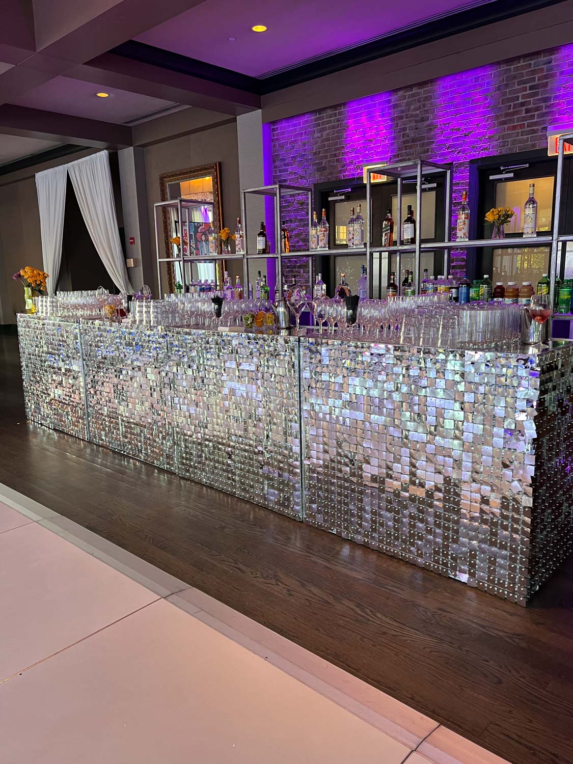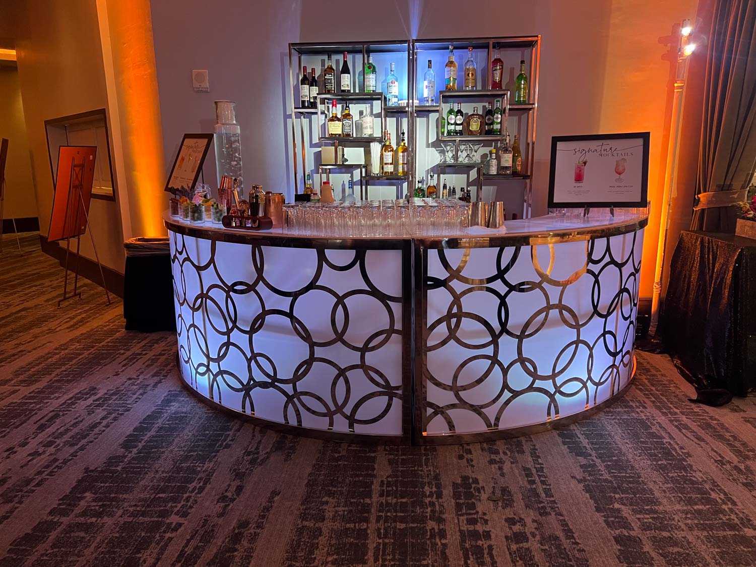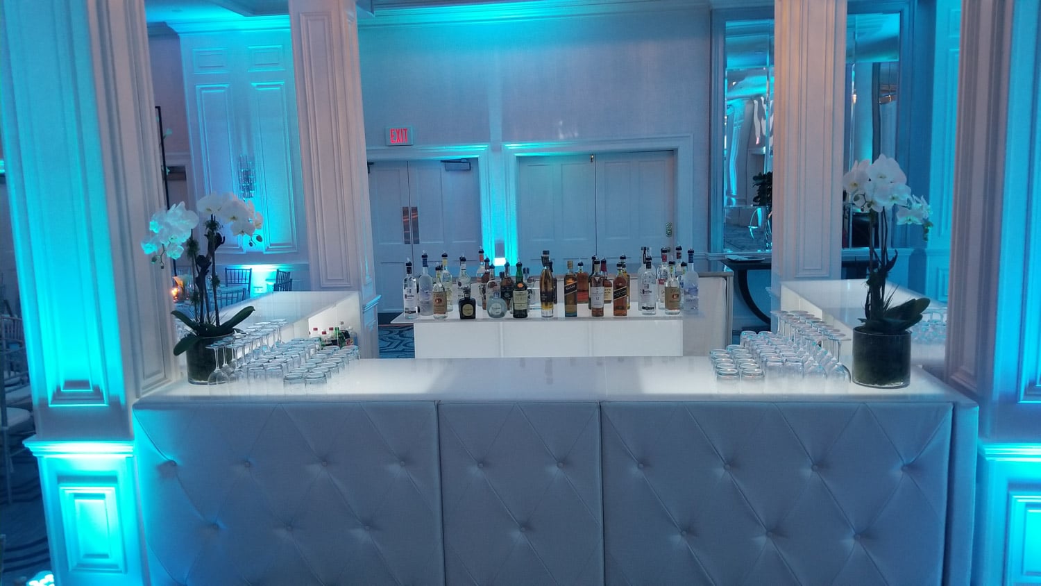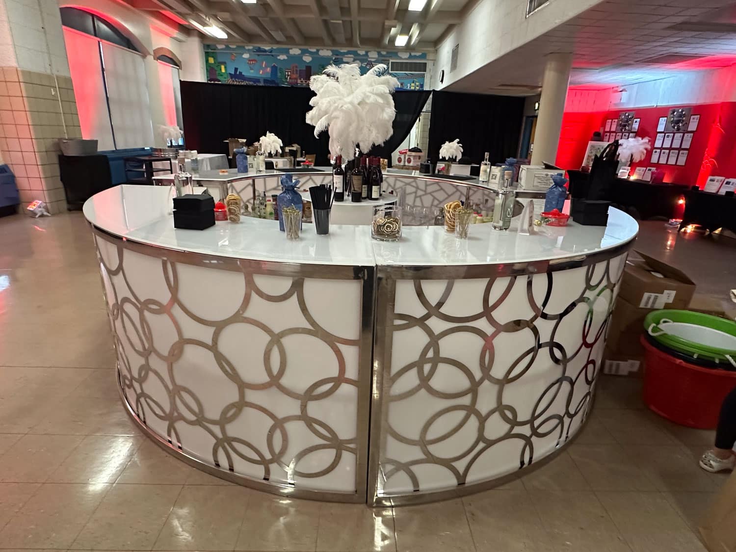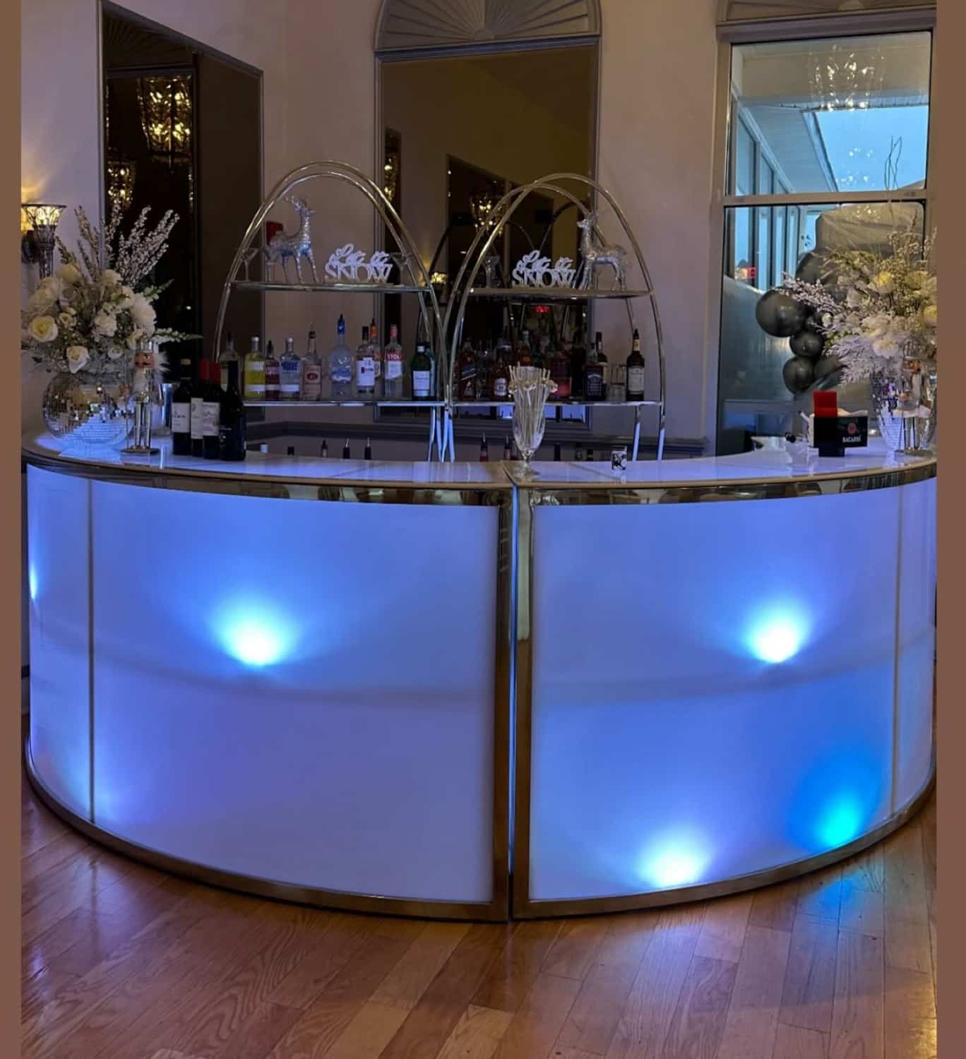 Hart to Hart’s Bar Rentals elevate your beverage service with stylish, functional bar setups available across NYC, Long Island, NJ and CT. Our bars come in a variety of designs—LED illuminated, sleek white or black, rustic wood, mirrored finishes and fully branded fronts—to enhance Weddings, Corporate Events, Bar/Bat Mitzvahs and Sweet 16s. Each bar acts as a visual focal point, supporting efficient service while complementing your overall décor. With professional construction and polished presentation, our bars bring sophistication and structure to your entertaining layout.