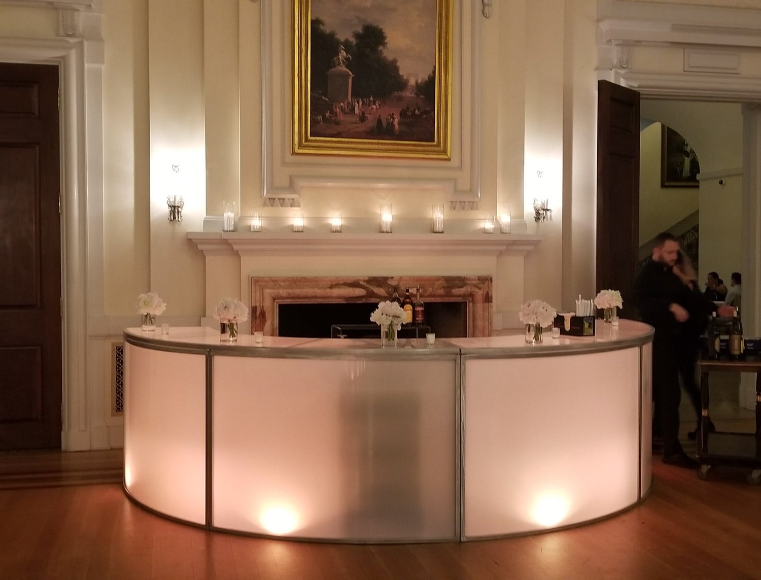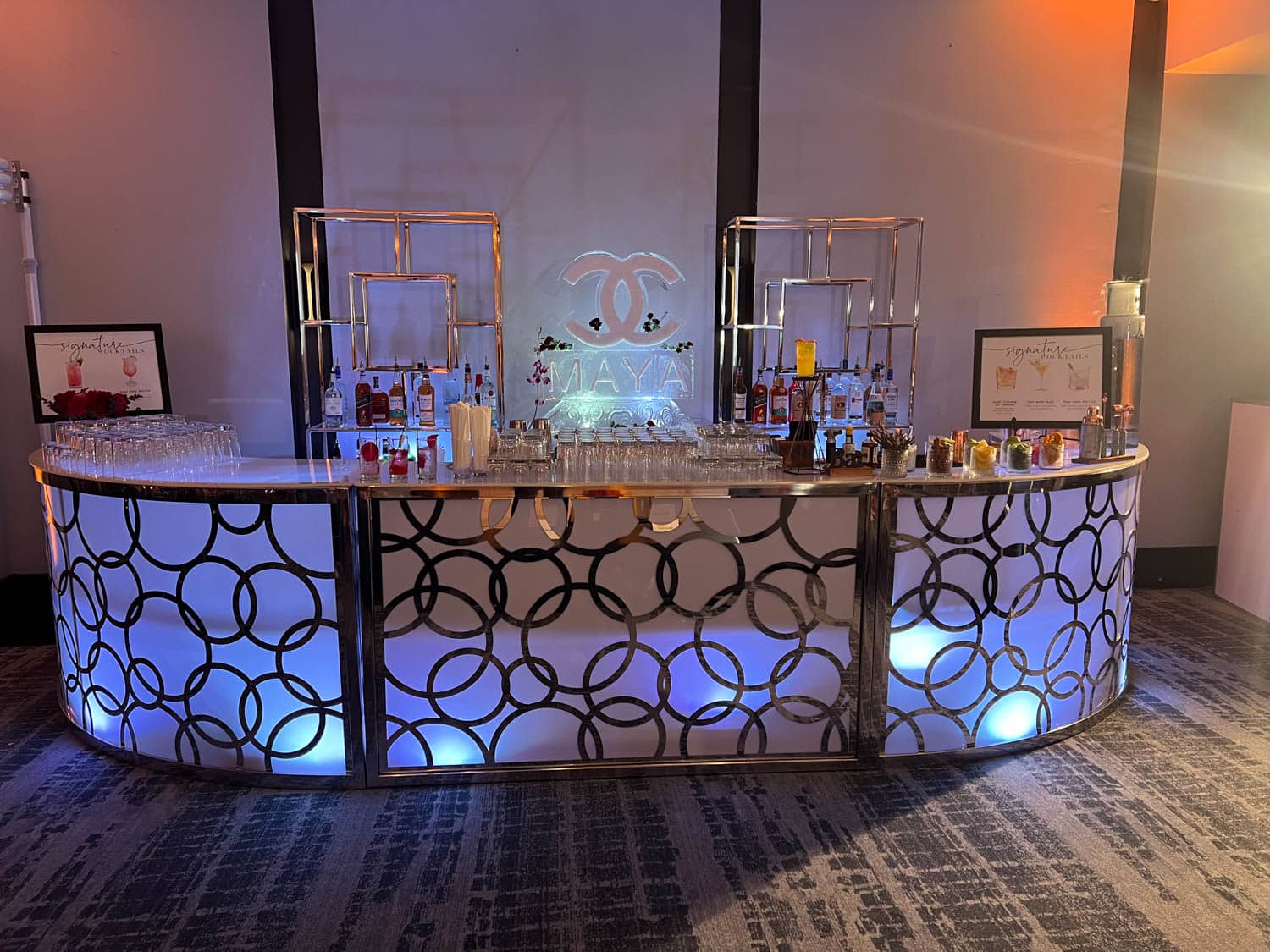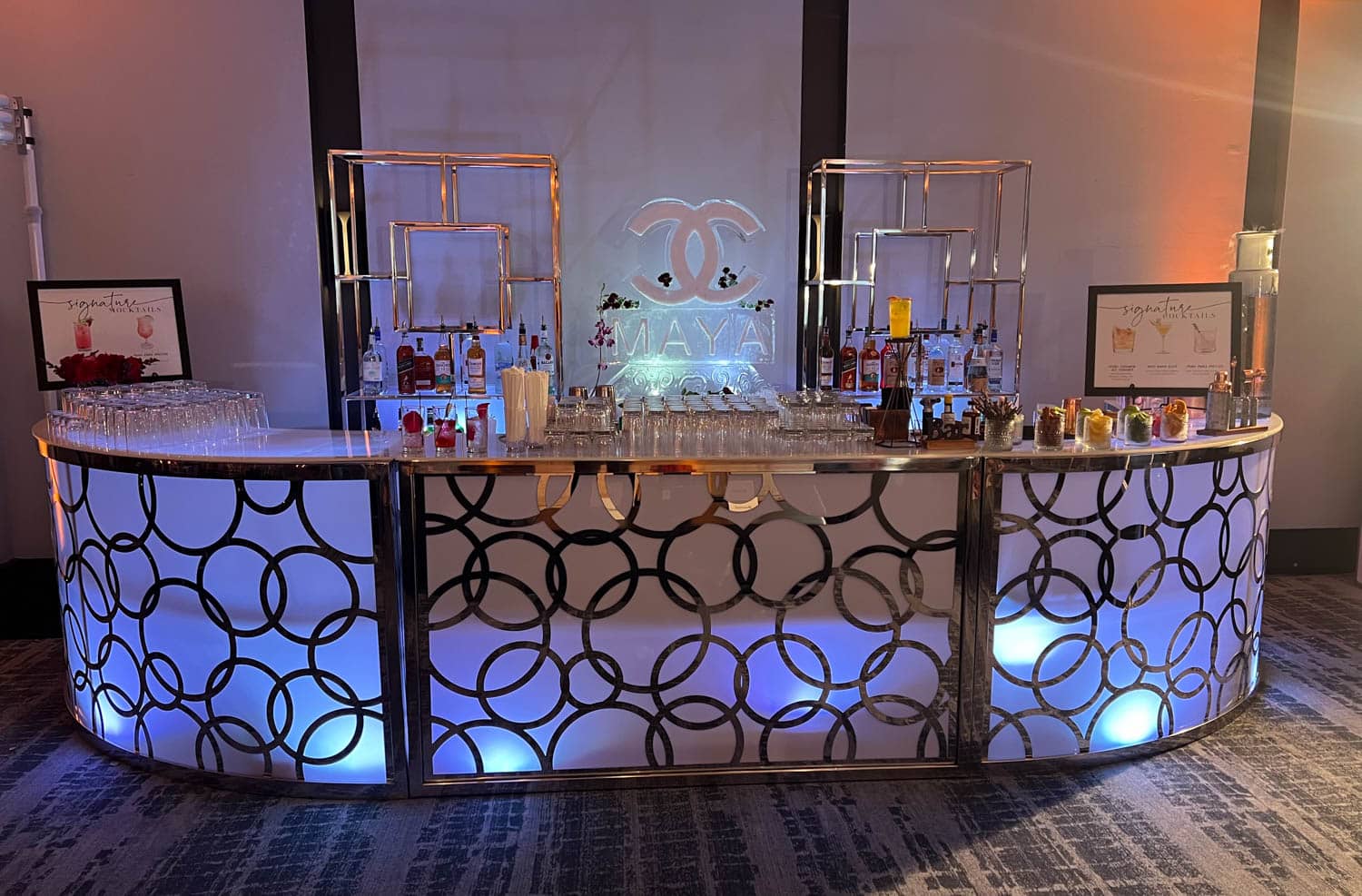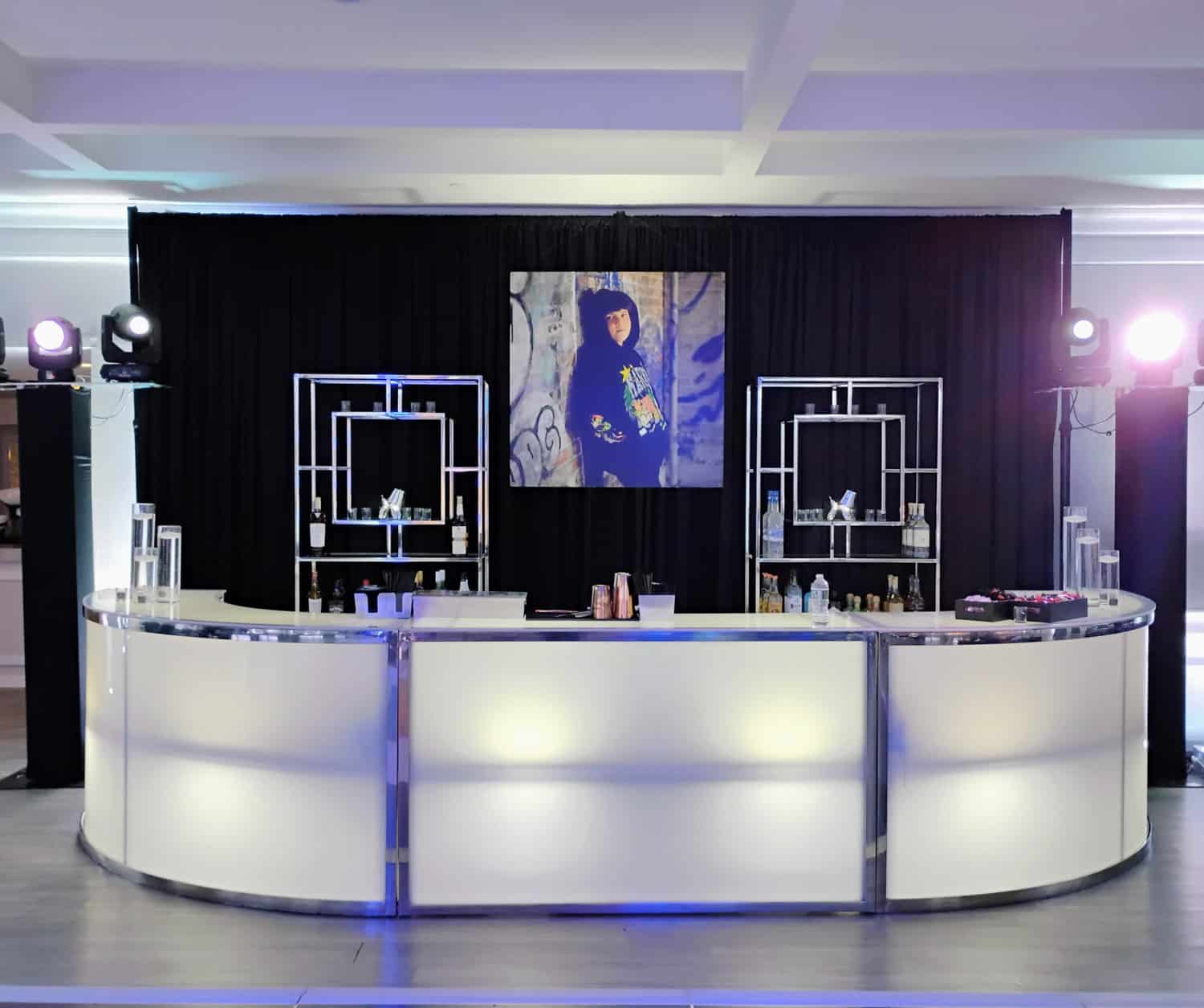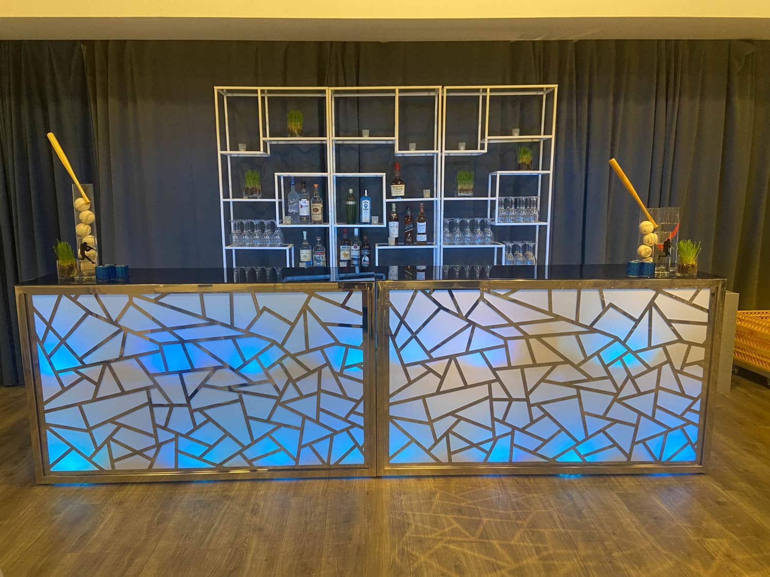Hart to Hart’s Bar Rentals elevate your beverage service with stylish, functional bar setups available across NYC, Long Island, NJ and CT. Our bars come in a variety of designs—LED illuminated, sleek white or black, rustic wood, mirrored finishes and fully branded fronts—to enhance Weddings, Corporate Events, Bar/Bat Mitzvahs and Sweet 16s. Each bar acts as a visual focal point, supporting efficient service while complementing your overall décor. With professional construction and polished presentation, our bars bring sophistication and structure to your entertaining layout.