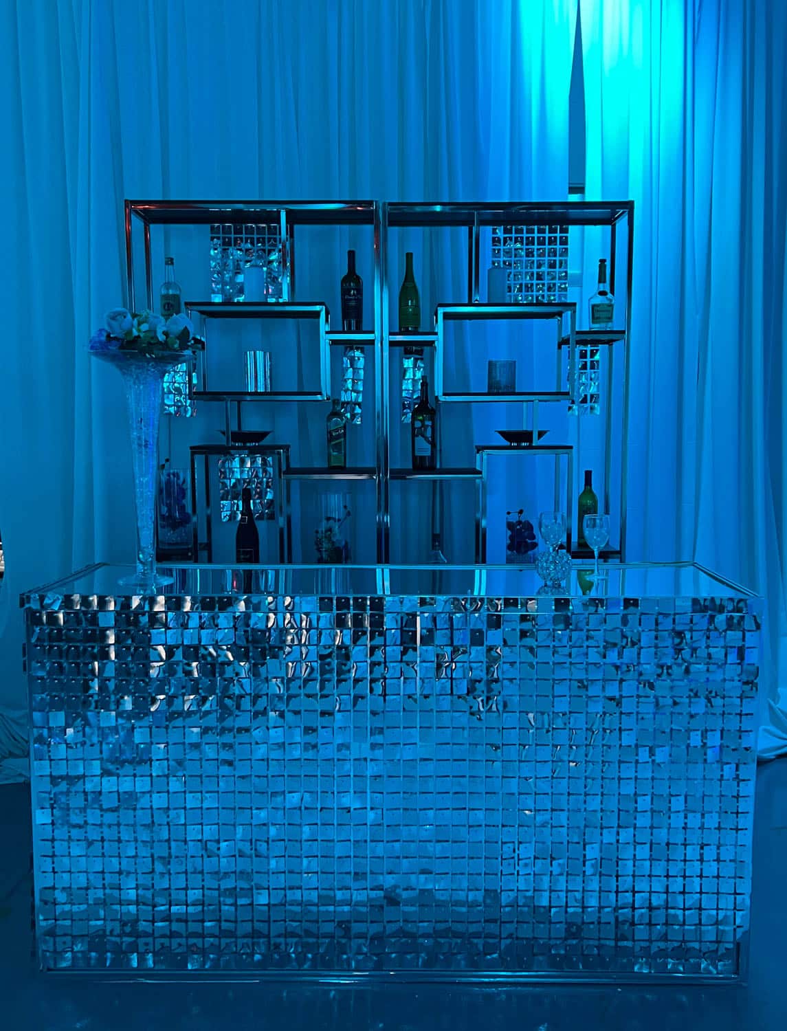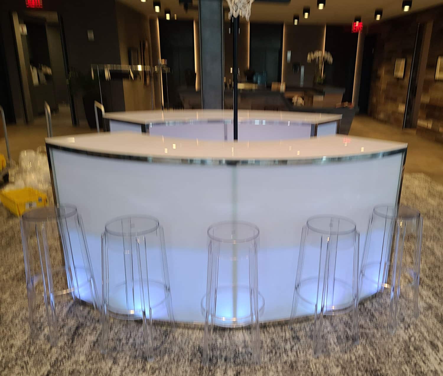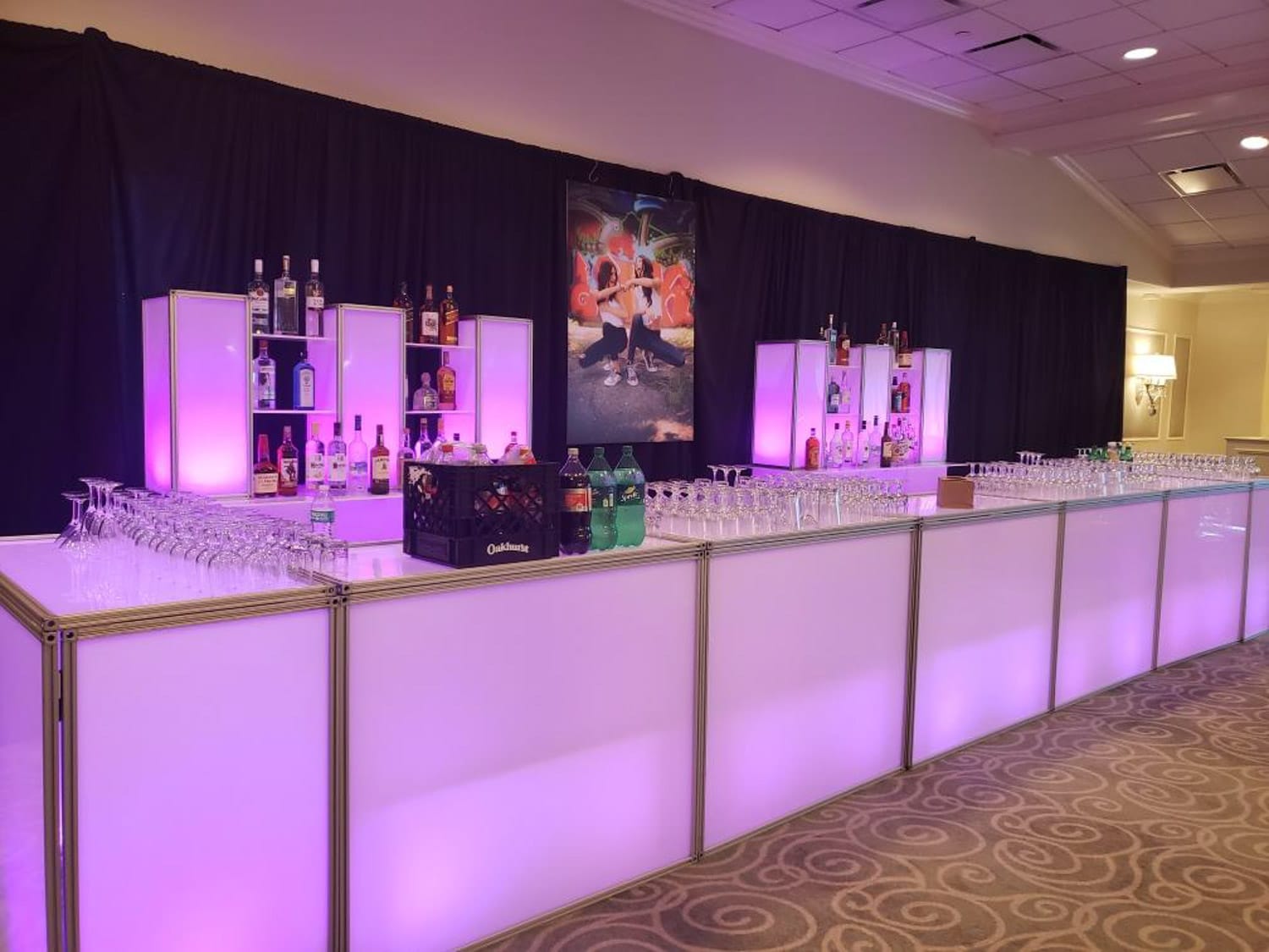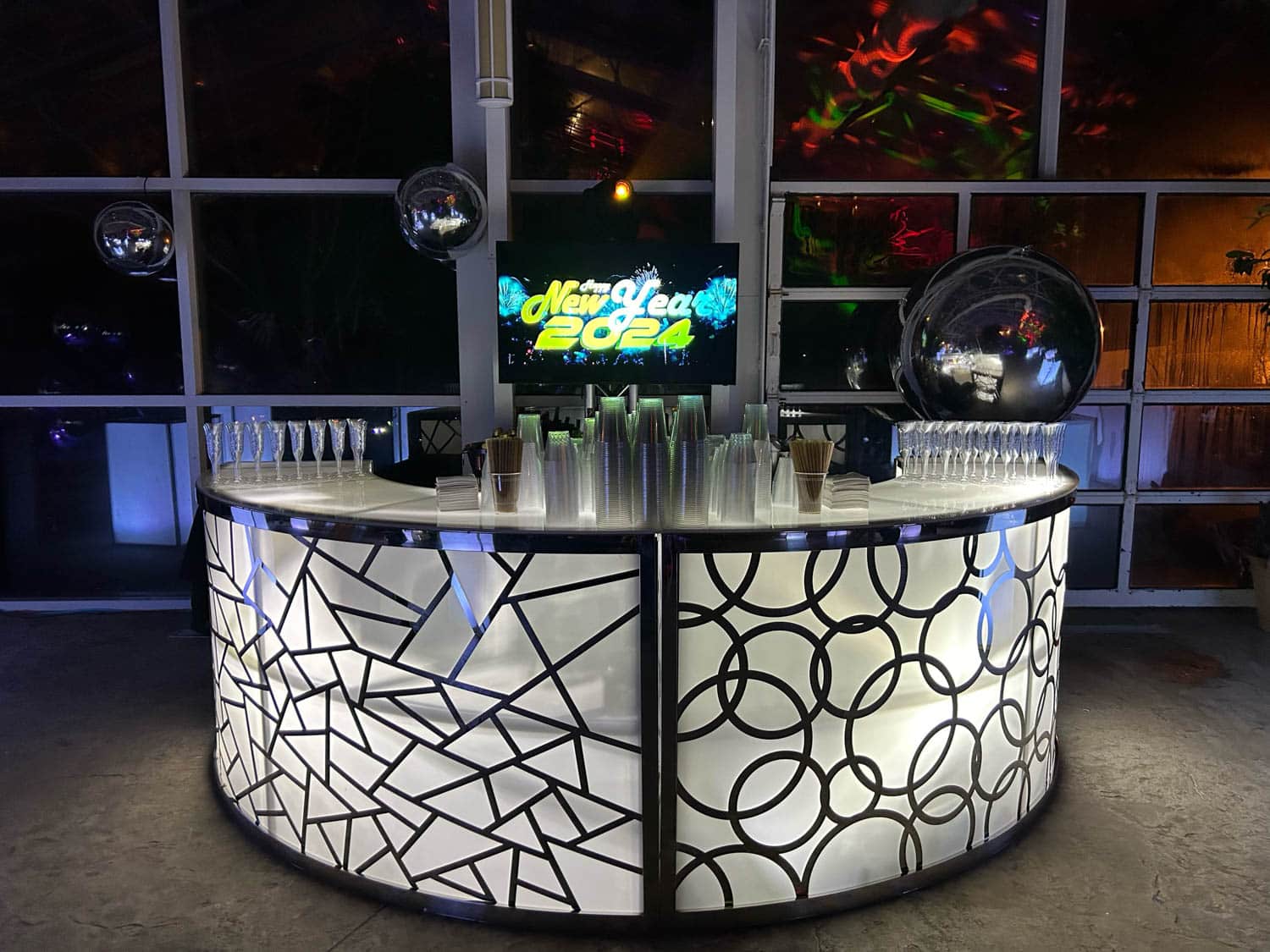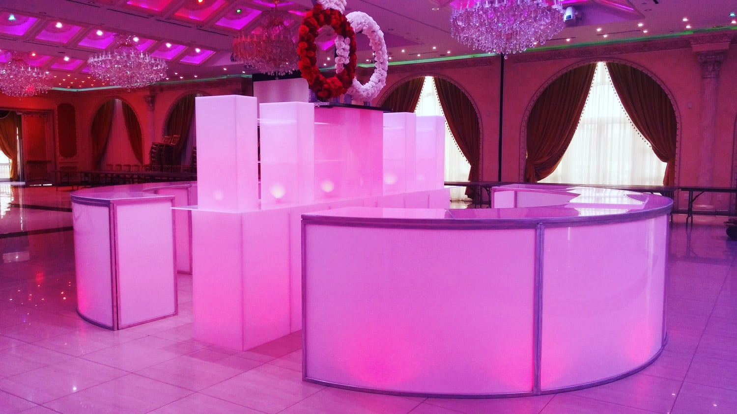 Hart to Hart’s Bar Rentals elevate your beverage service with stylish, functional bar setups available across NYC, Long Island, NJ and CT. Our bars come in a variety of designs—LED illuminated, sleek white or black, rustic wood, mirrored finishes and fully branded fronts—to enhance Weddings, Corporate Events, Bar/Bat Mitzvahs and Sweet 16s. Each bar acts as a visual focal point, supporting efficient service while complementing your overall décor. With professional construction and polished presentation, our bars bring sophistication and structure to your entertaining layout.