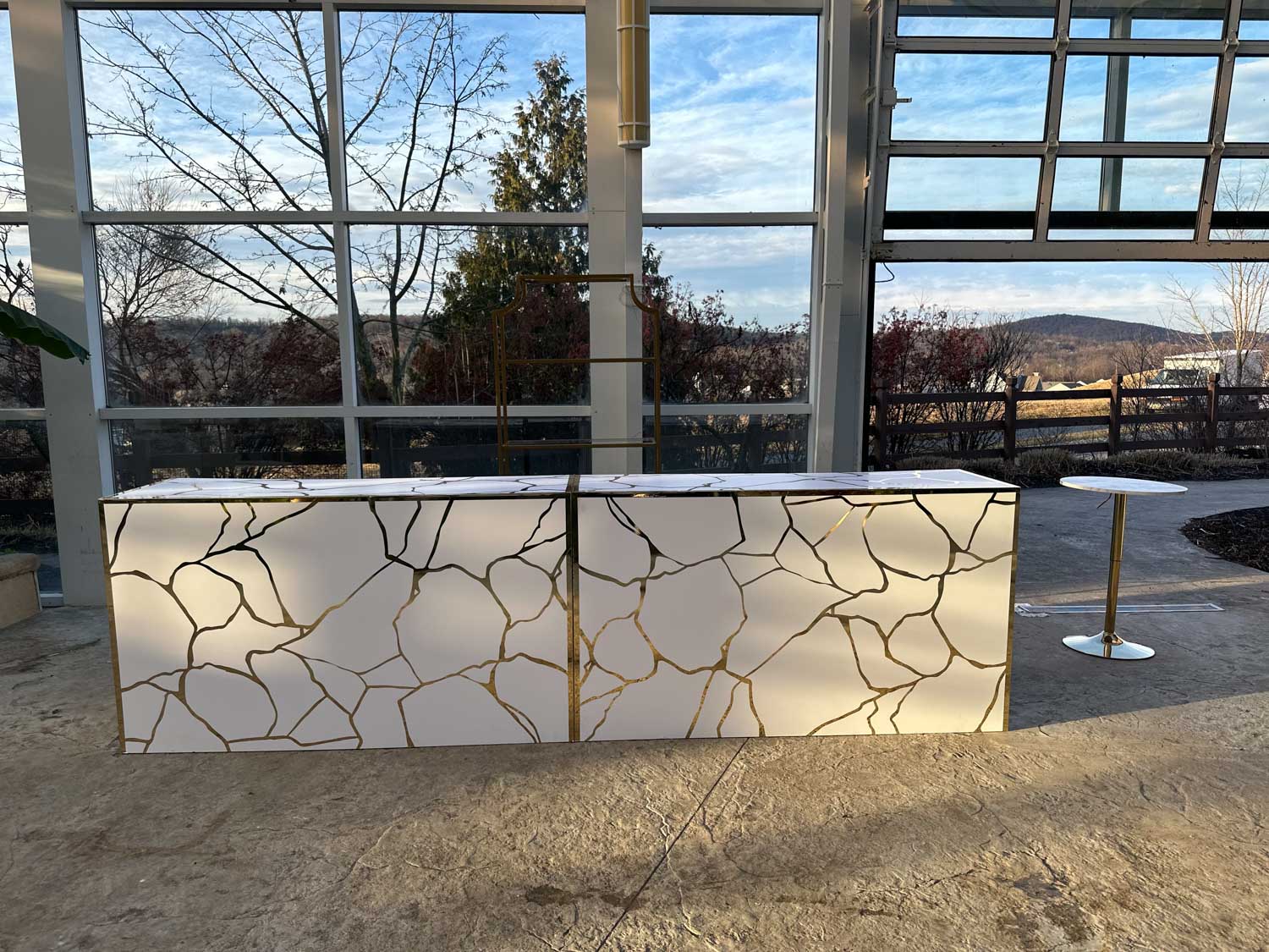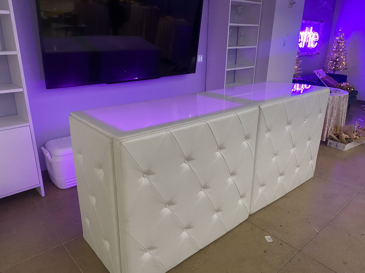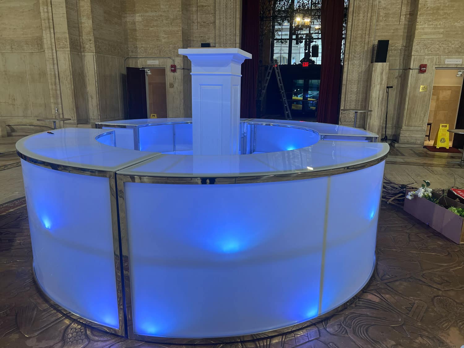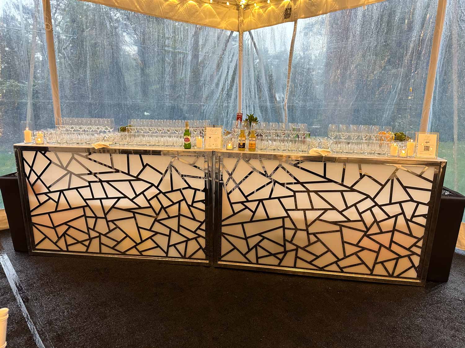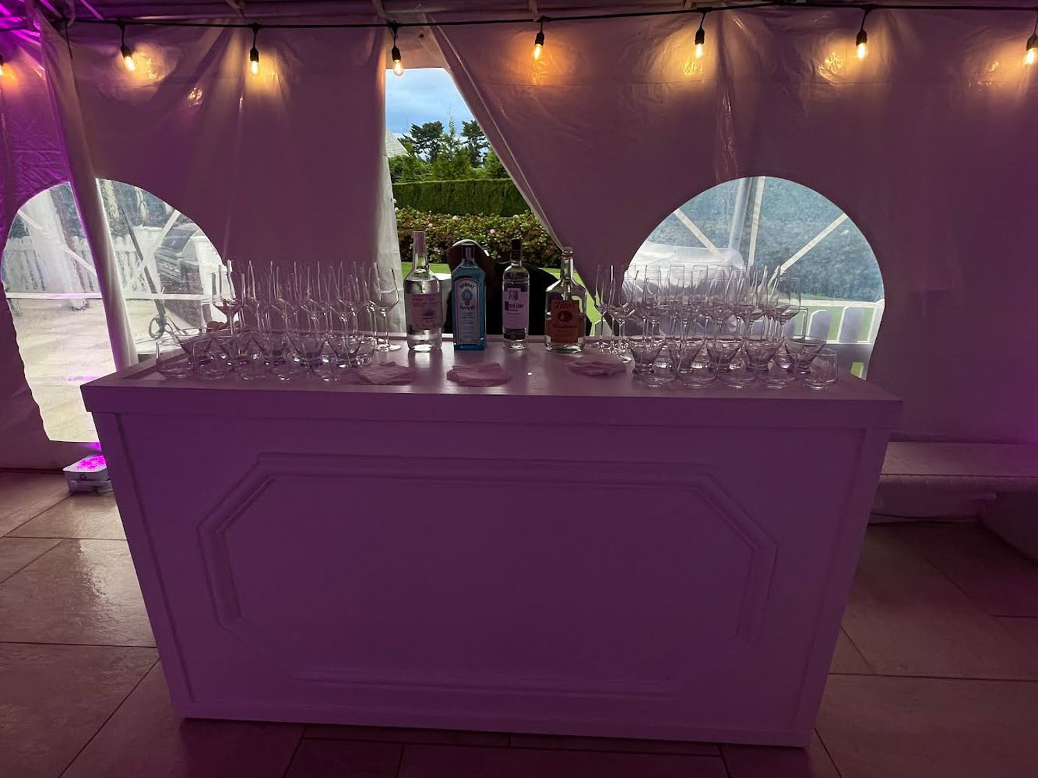 Hart to Hart’s Bar Rentals elevate your beverage service with stylish, functional bar setups available across NYC, Long Island, NJ and CT. Our bars come in a variety of designs—LED illuminated, sleek white or black, rustic wood, mirrored finishes and fully branded fronts—to enhance Weddings, Corporate Events, Bar/Bat Mitzvahs and Sweet 16s. Each bar acts as a visual focal point, supporting efficient service while complementing your overall décor. With professional construction and polished presentation, our bars bring sophistication and structure to your entertaining layout.