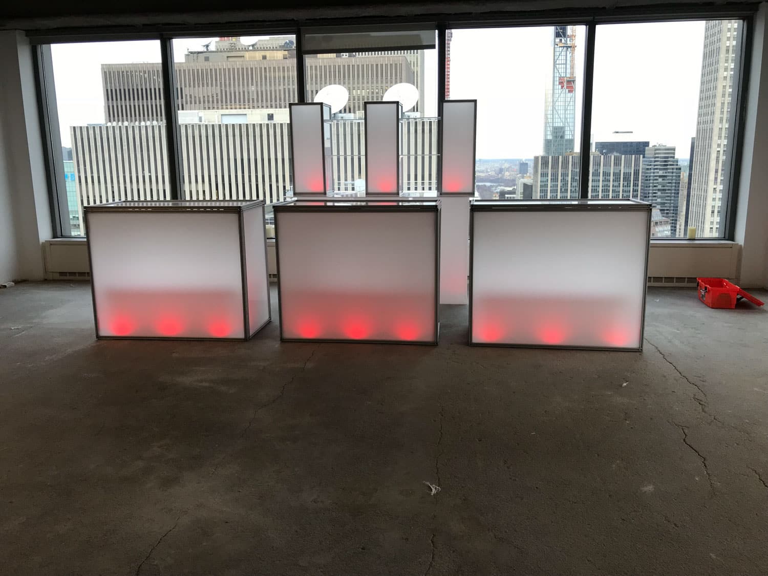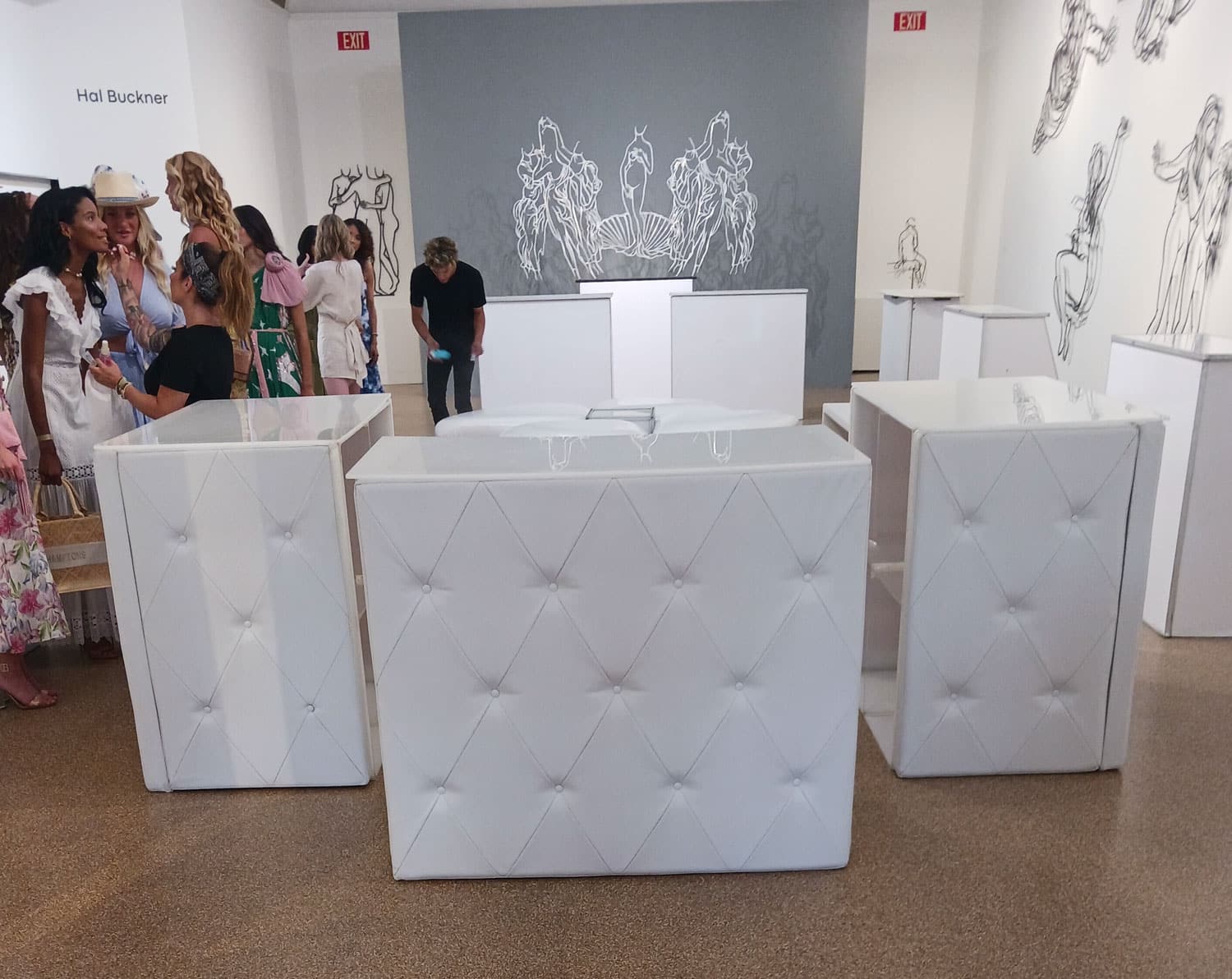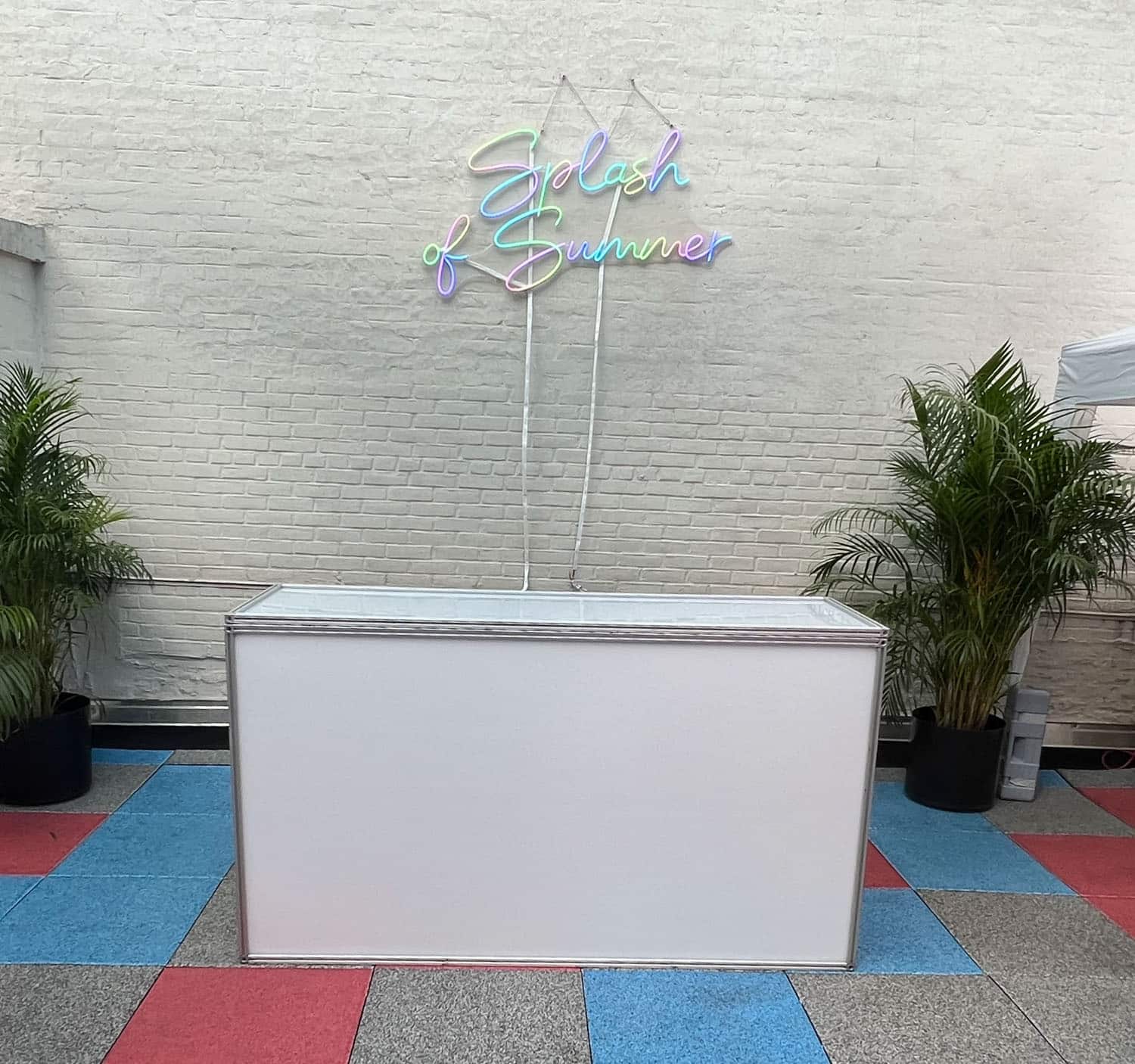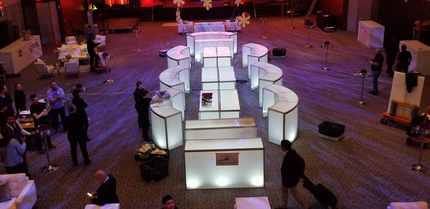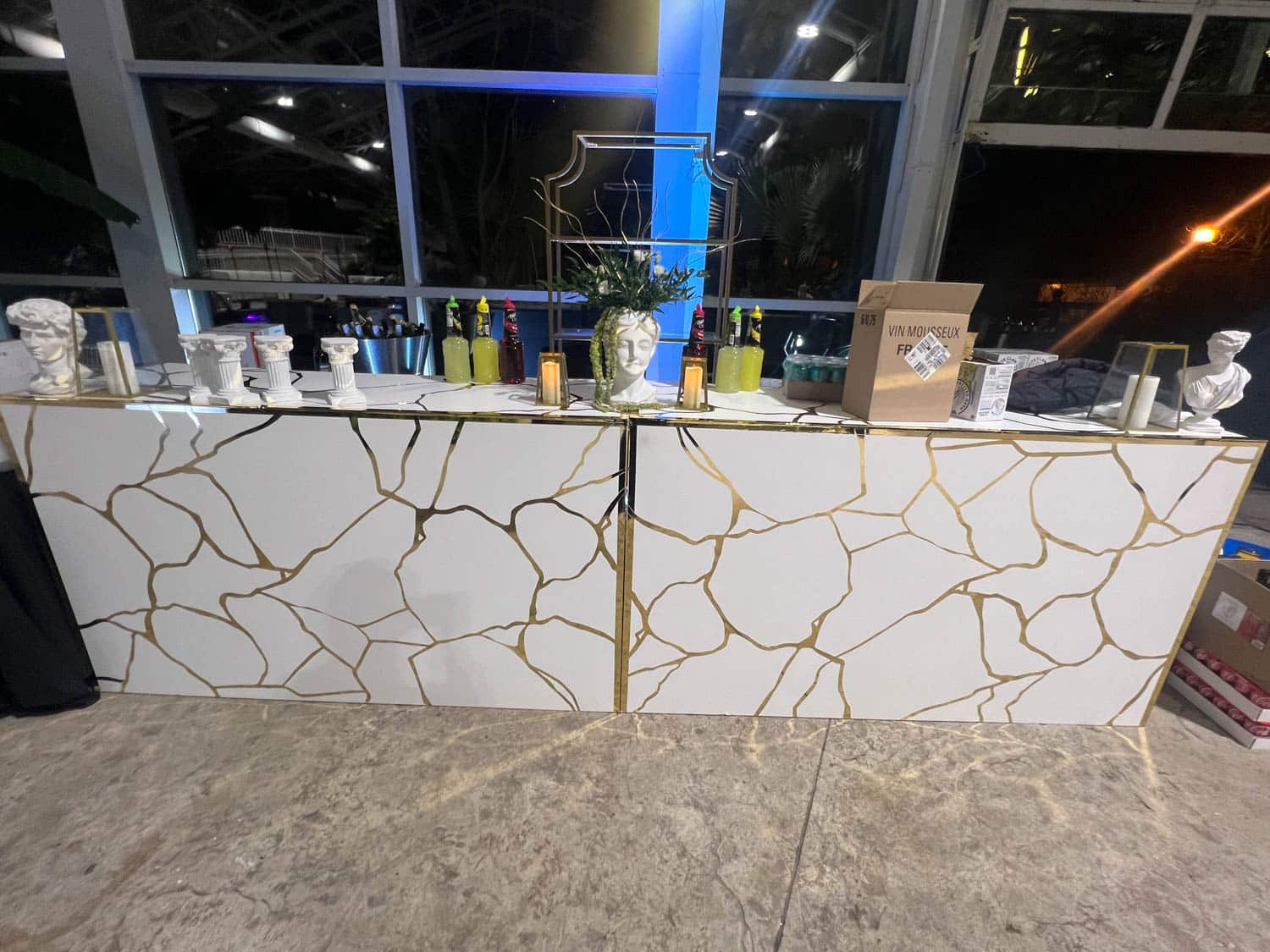 Hart to Hart’s Bar Rentals elevate your beverage service with stylish, functional bar setups available across NYC, Long Island, NJ and CT. Our bars come in a variety of designs—LED illuminated, sleek white or black, rustic wood, mirrored finishes and fully branded fronts—to enhance Weddings, Corporate Events, Bar/Bat Mitzvahs and Sweet 16s. Each bar acts as a visual focal point, supporting efficient service while complementing your overall décor. With professional construction and polished presentation, our bars bring sophistication and structure to your entertaining layout.