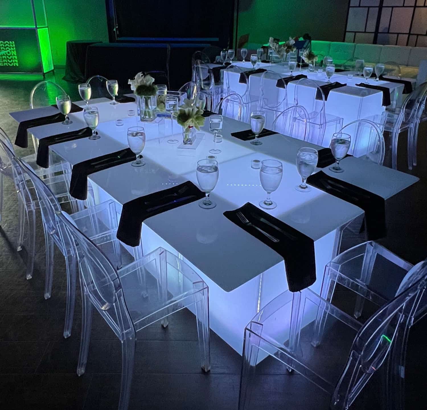 Each table is chosen based on your theme, guest count and venue style, ensuring a cohesive and intentional layout. Whether you’re designing an elegant dinner, a lively cocktail hour or a stylish lounge environment, our tables add both function and personality. Hart to Hart handles all delivery and placement, ensuring every table is positioned with precision. With the right combination of table styles, your event gains visual harmony and functional balance that enhances the entire guest experience.