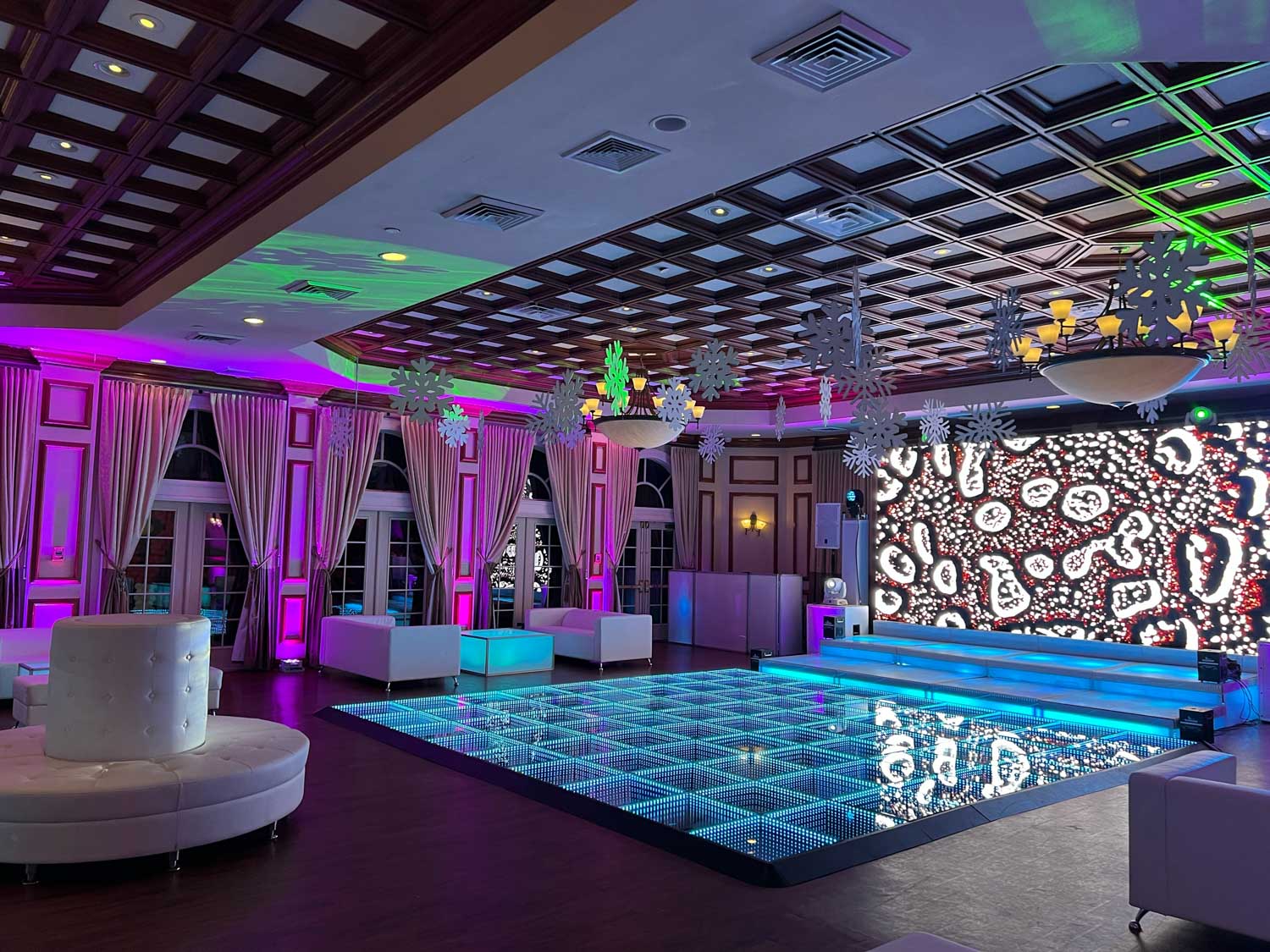 Hart to Hart’s Mitzvah Lighting Rentals transform your event environment with vibrant effects, elegant ambience and dynamic production across NYC, Long Island, NJ and CT. Our lighting options include uplighting, intelligent lights, LED walls, spotlights, moving heads, pattern projections and custom logo gobos that bring your theme to life. Lighting elevates décor, enhances energy levels and creates immersive moments that captivate both kids and adults throughout the celebration.