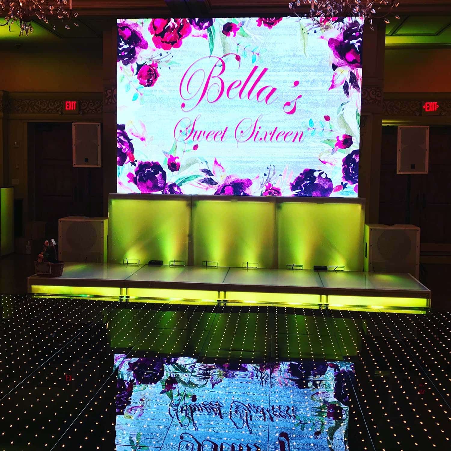 Our team manages design, setup, programming, and operation to ensure flawless performance throughout your event. Serving NY, NJ & CT, we configure your LED wall in a variety of sizes to match your venue layout and creative vision. From animated graphics behind the DJ booth to highlight reels during special moments, LED displays add an unforgettable element that makes your Sweet 16 stand out with technology-driven flair.