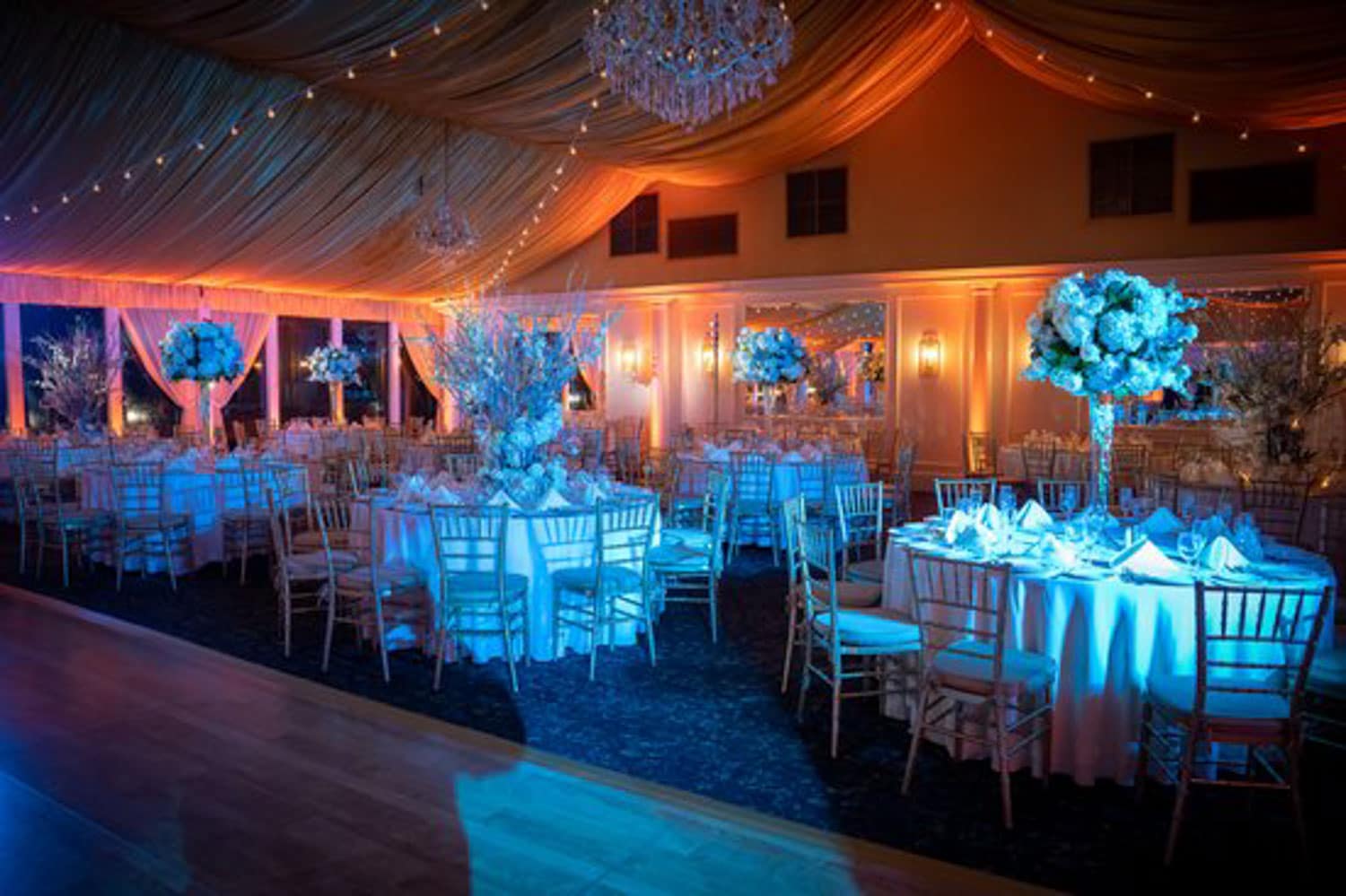 Bridgeview Yacht Club features a variety of elegant indoor and outdoor spaces. Couples can exchange vows on the beautifully landscaped waterfront lawn, with the bay as a picturesque backdrop, or choose an indoor ceremony in the sophisticated ballroom, which boasts floor-to-ceiling windows overlooking the marina.