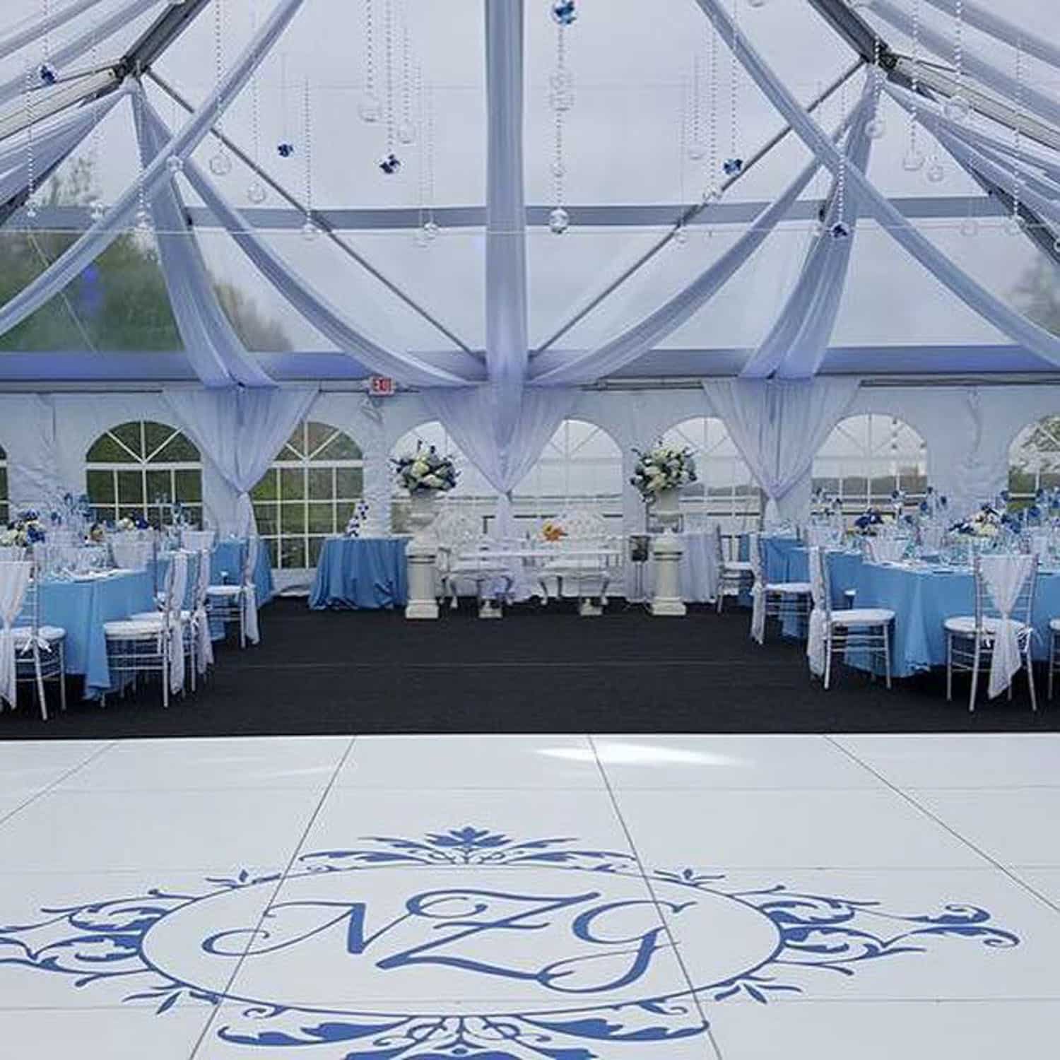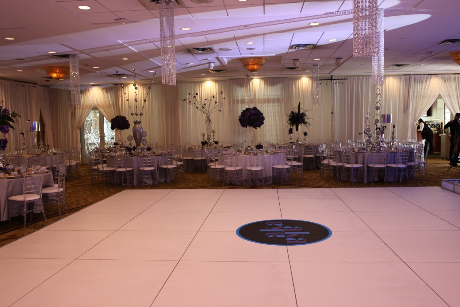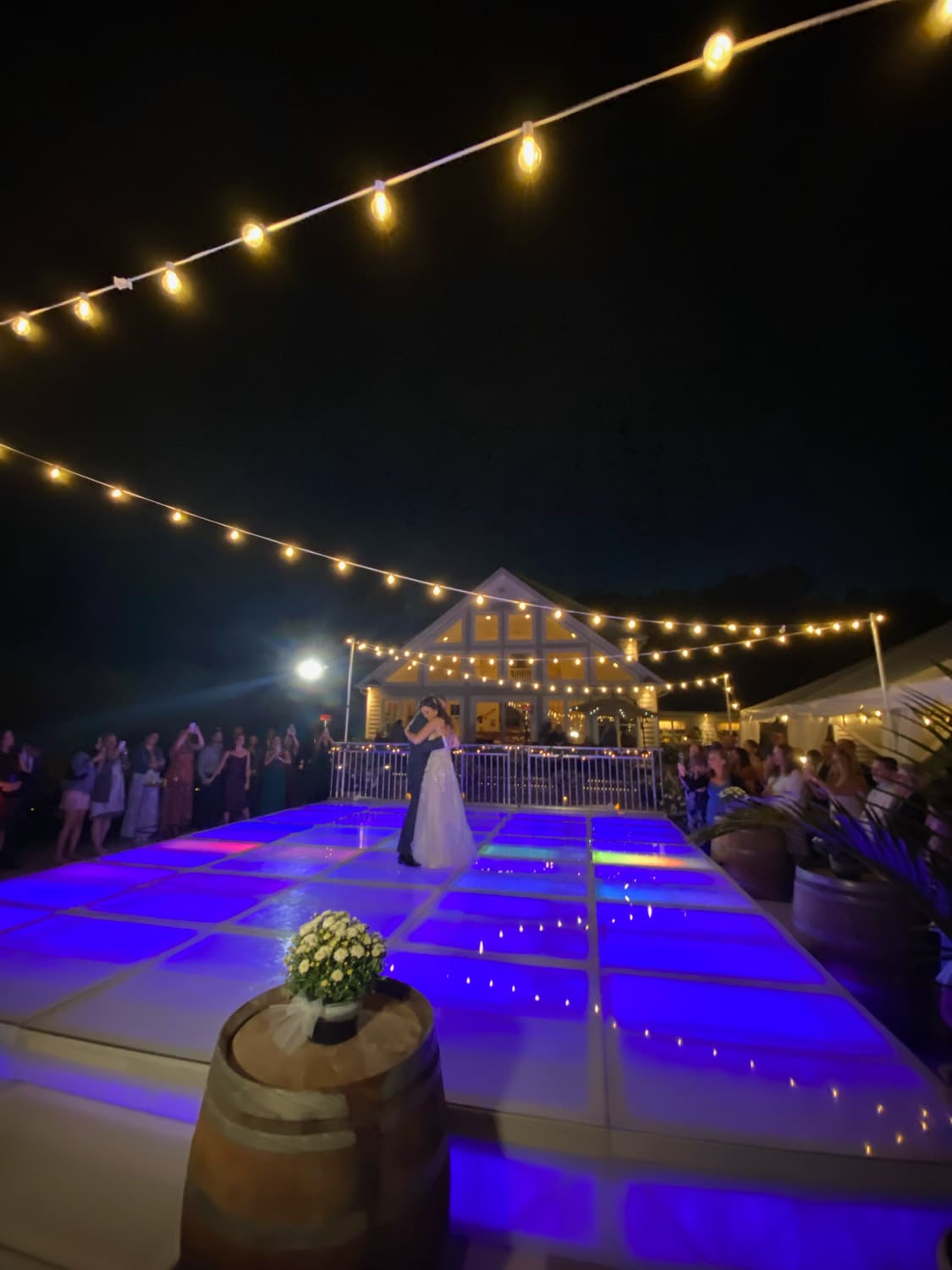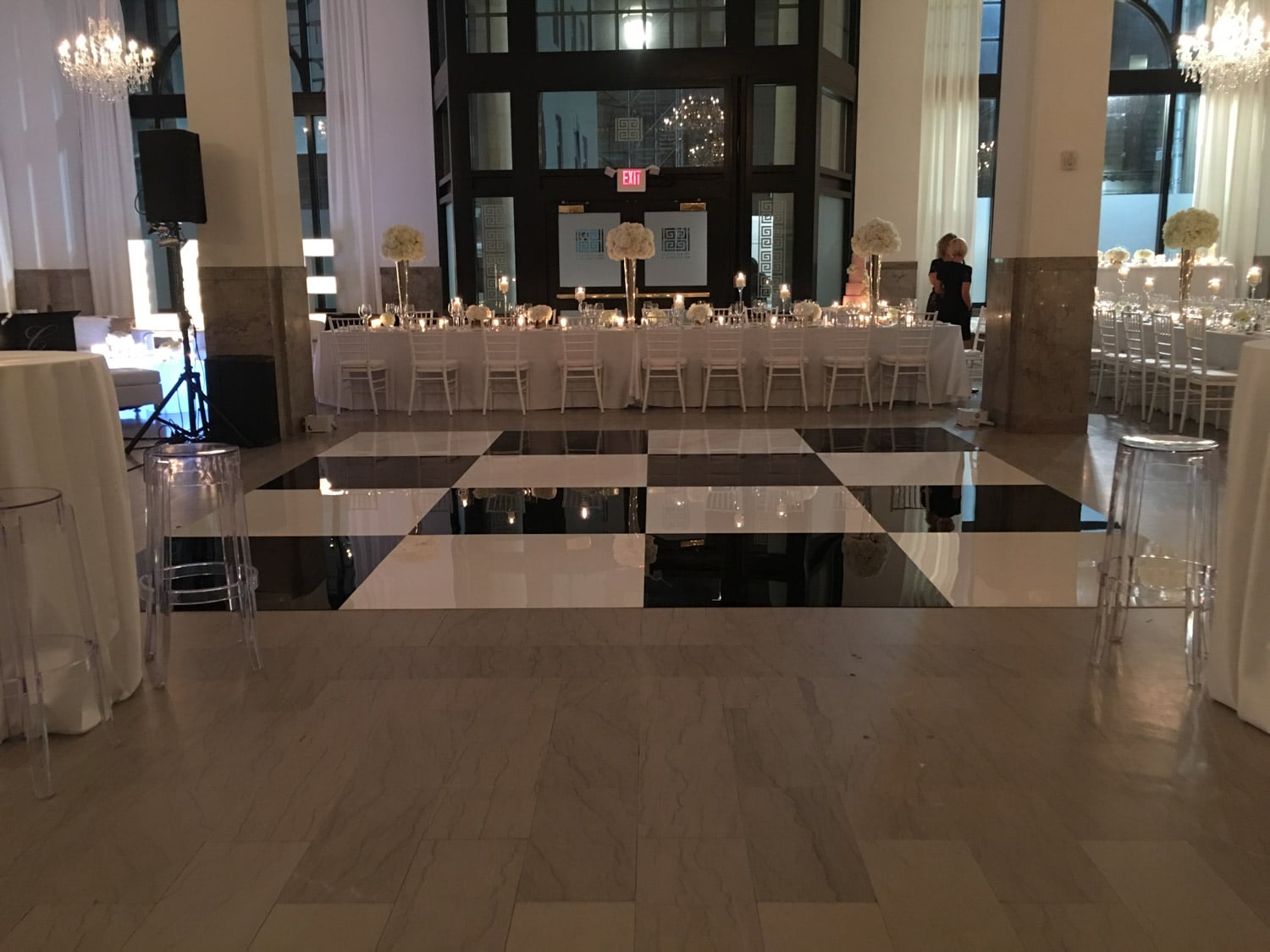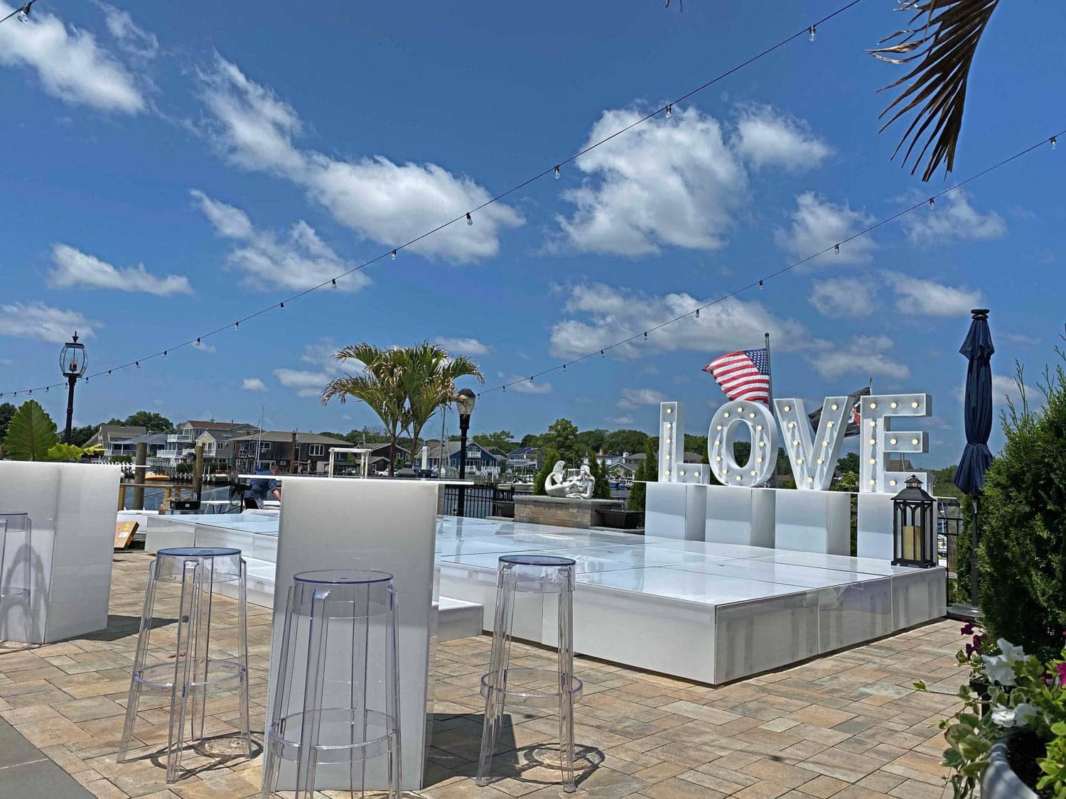 Hart to Hart’s Wedding Dance Floor Rentals create a stunning central focal point for celebrations across NYC, Long Island, NJ and CT. Our selection includes high-gloss white or black floors, parquet options, LED dance floors and fully custom vinyl-wrapped designs featuring monograms, patterns or wedding branding. A beautiful dance floor transforms the room visually while encouraging guests to gather, celebrate and enjoy your reception. We size each floor based on your venue and guest count to ensure optimal comfort and aesthetic balance.