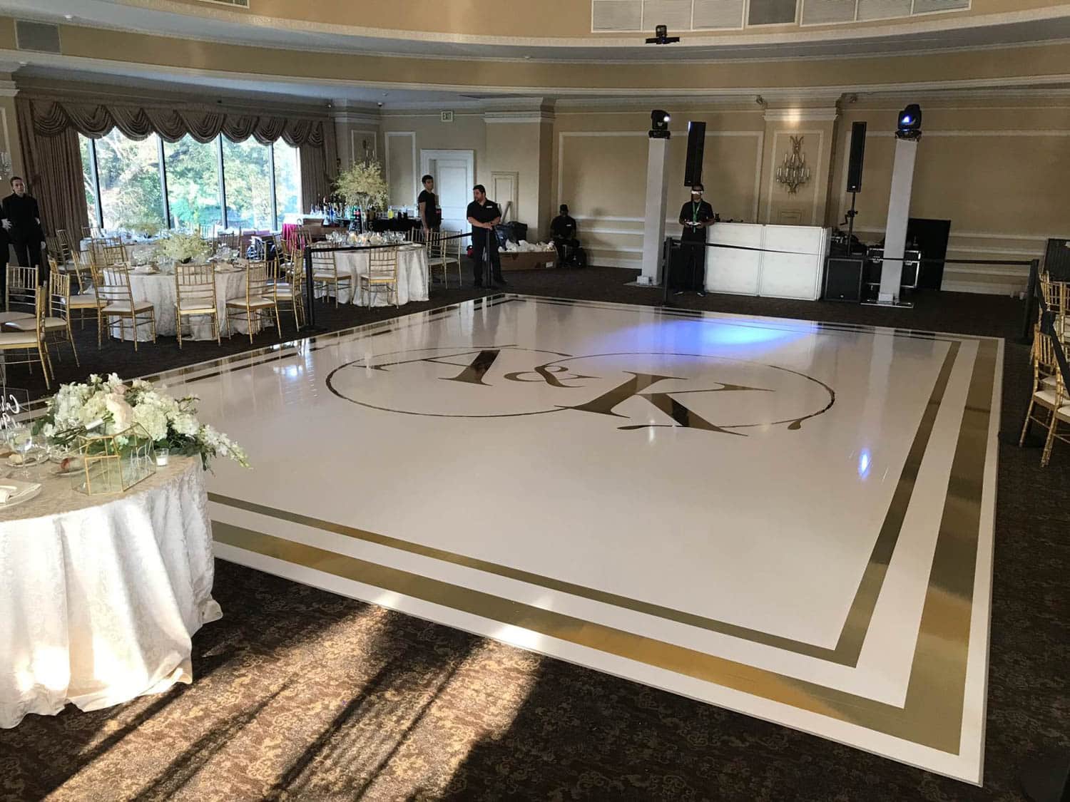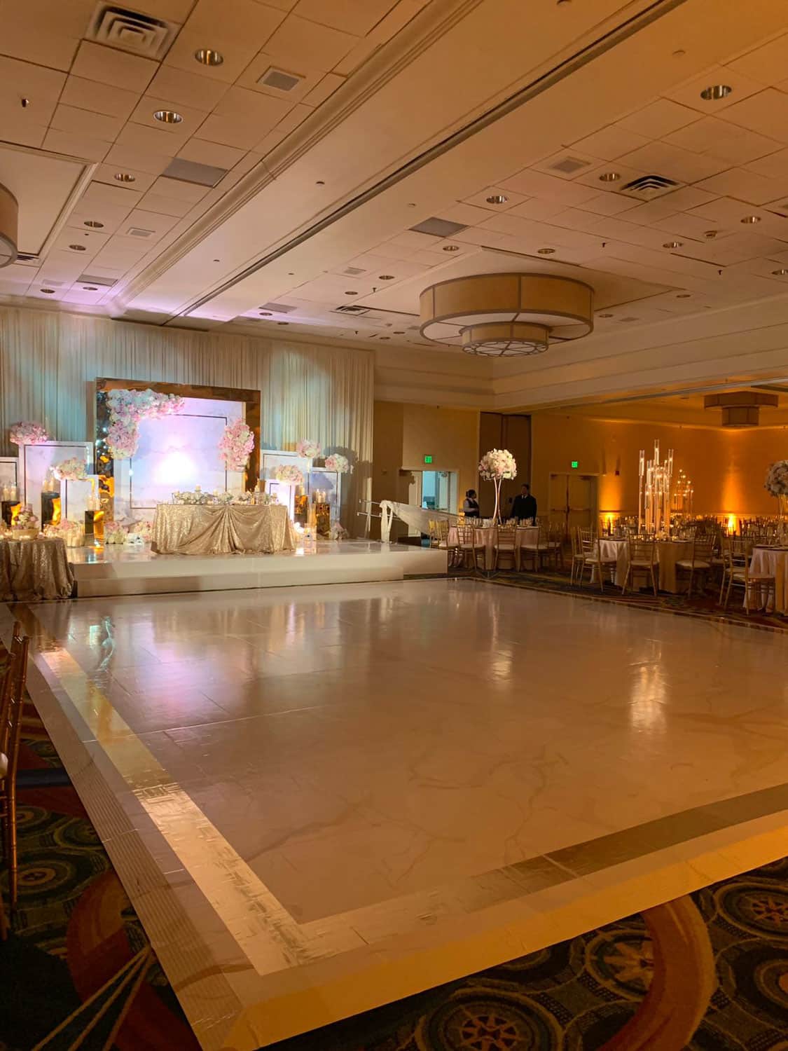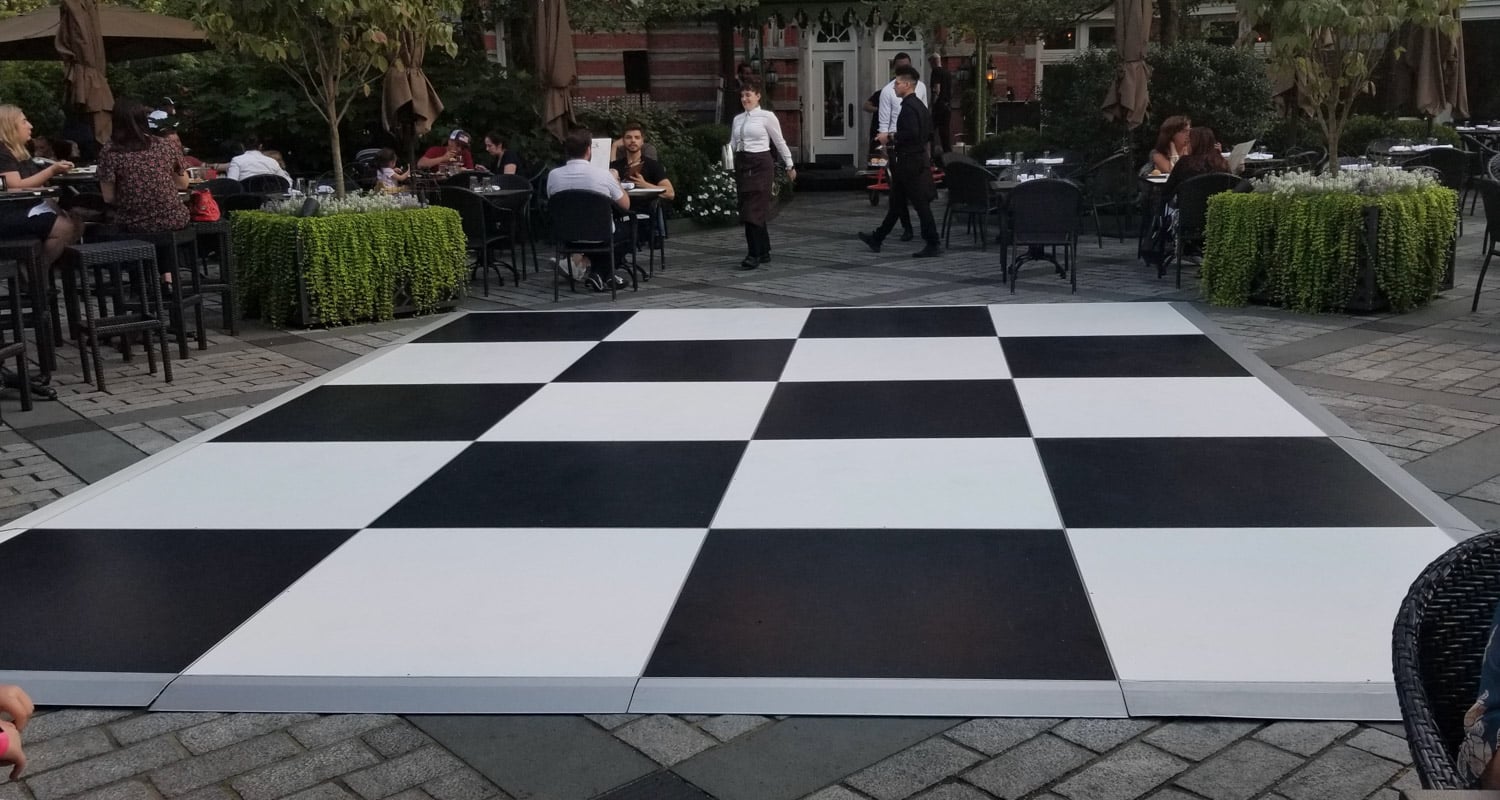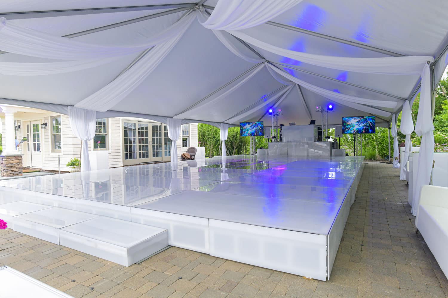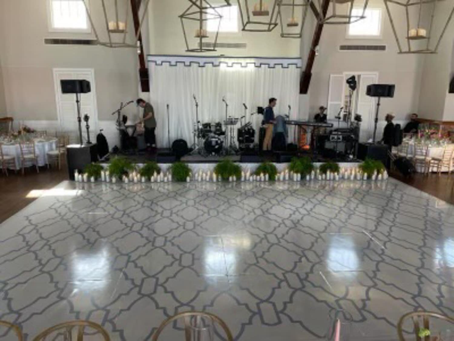 Hart to Hart’s Wedding Dance Floor Rentals create a stunning central focal point for celebrations across NYC, Long Island, NJ and CT. Our selection includes high-gloss white or black floors, parquet options, LED dance floors and fully custom vinyl-wrapped designs featuring monograms, patterns or wedding branding. A beautiful dance floor transforms the room visually while encouraging guests to gather, celebrate and enjoy your reception. We size each floor based on your venue and guest count to ensure optimal comfort and aesthetic balance.