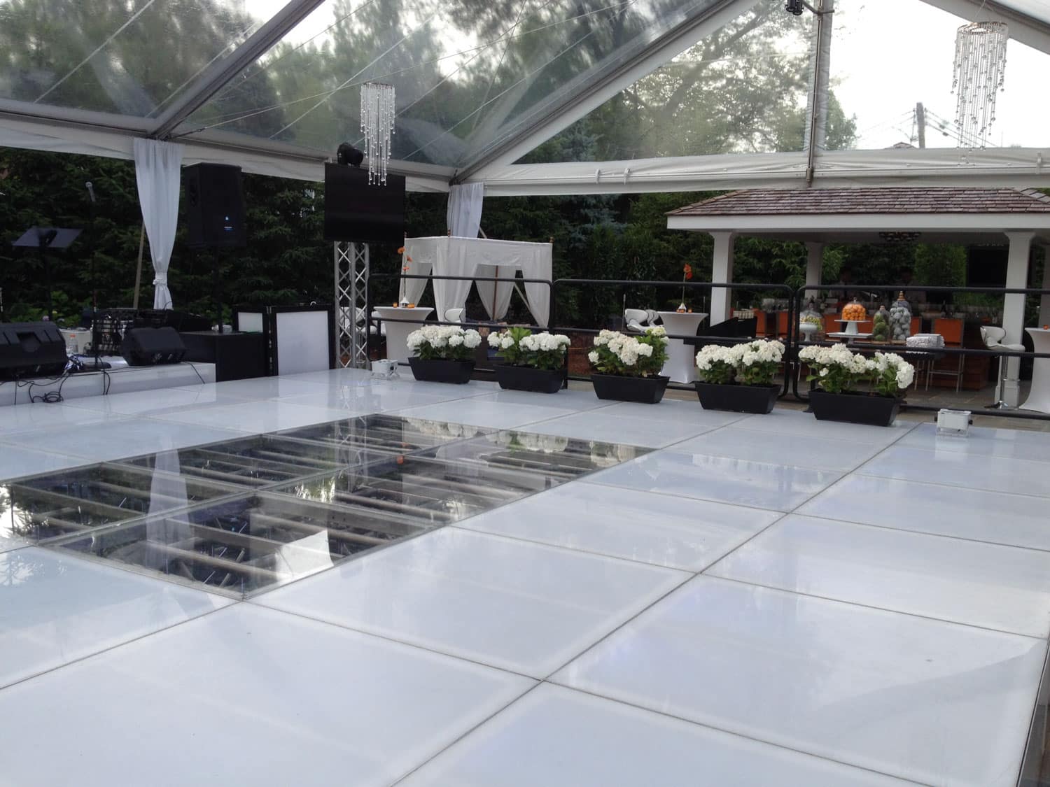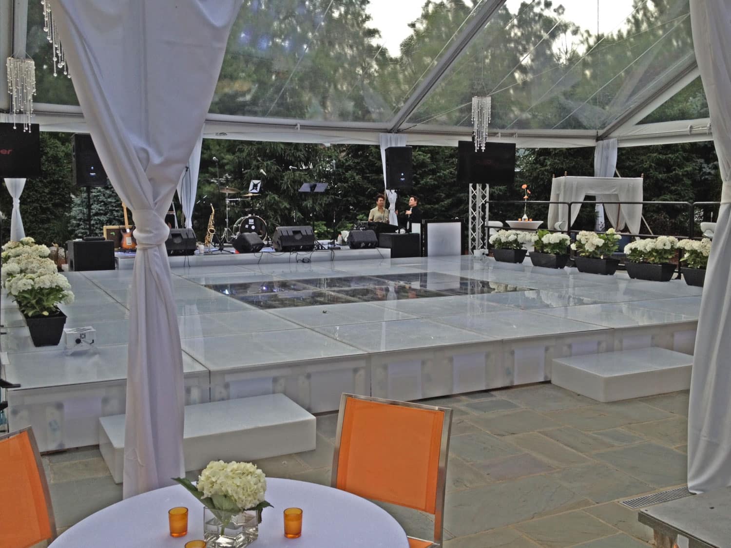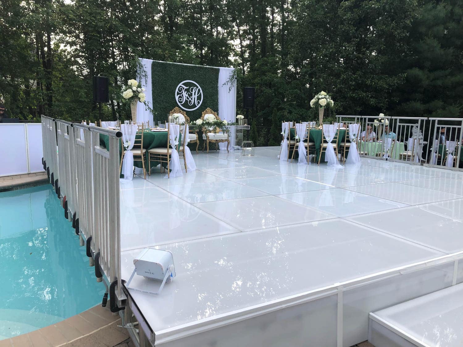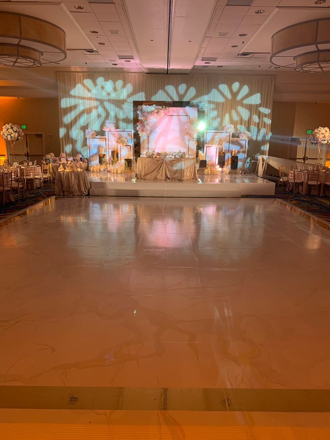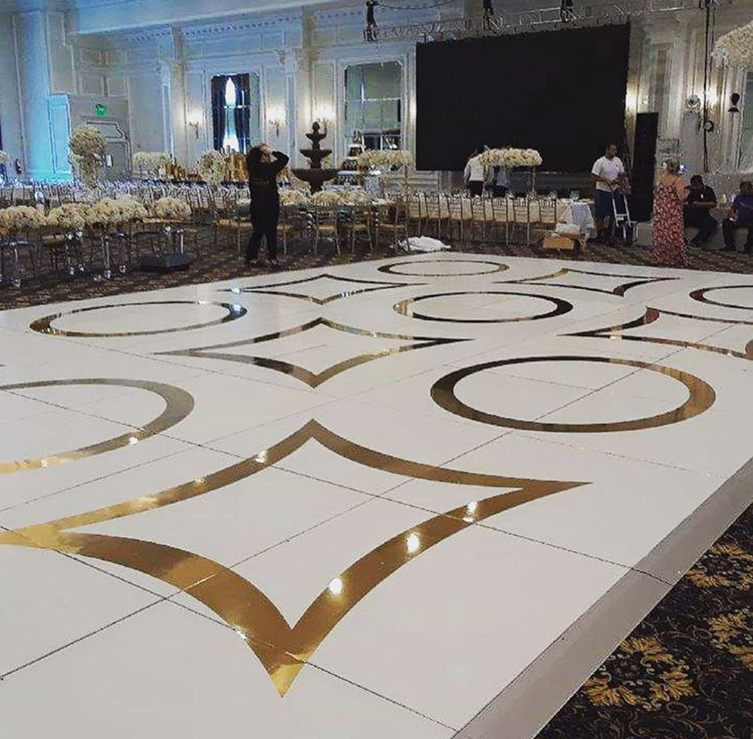 Hart to Hart’s Wedding Dance Floor Rentals create a stunning central focal point for celebrations across NYC, Long Island, NJ and CT. Our selection includes high-gloss white or black floors, parquet options, LED dance floors and fully custom vinyl-wrapped designs featuring monograms, patterns or wedding branding. A beautiful dance floor transforms the room visually while encouraging guests to gather, celebrate and enjoy your reception. We size each floor based on your venue and guest count to ensure optimal comfort and aesthetic balance.
