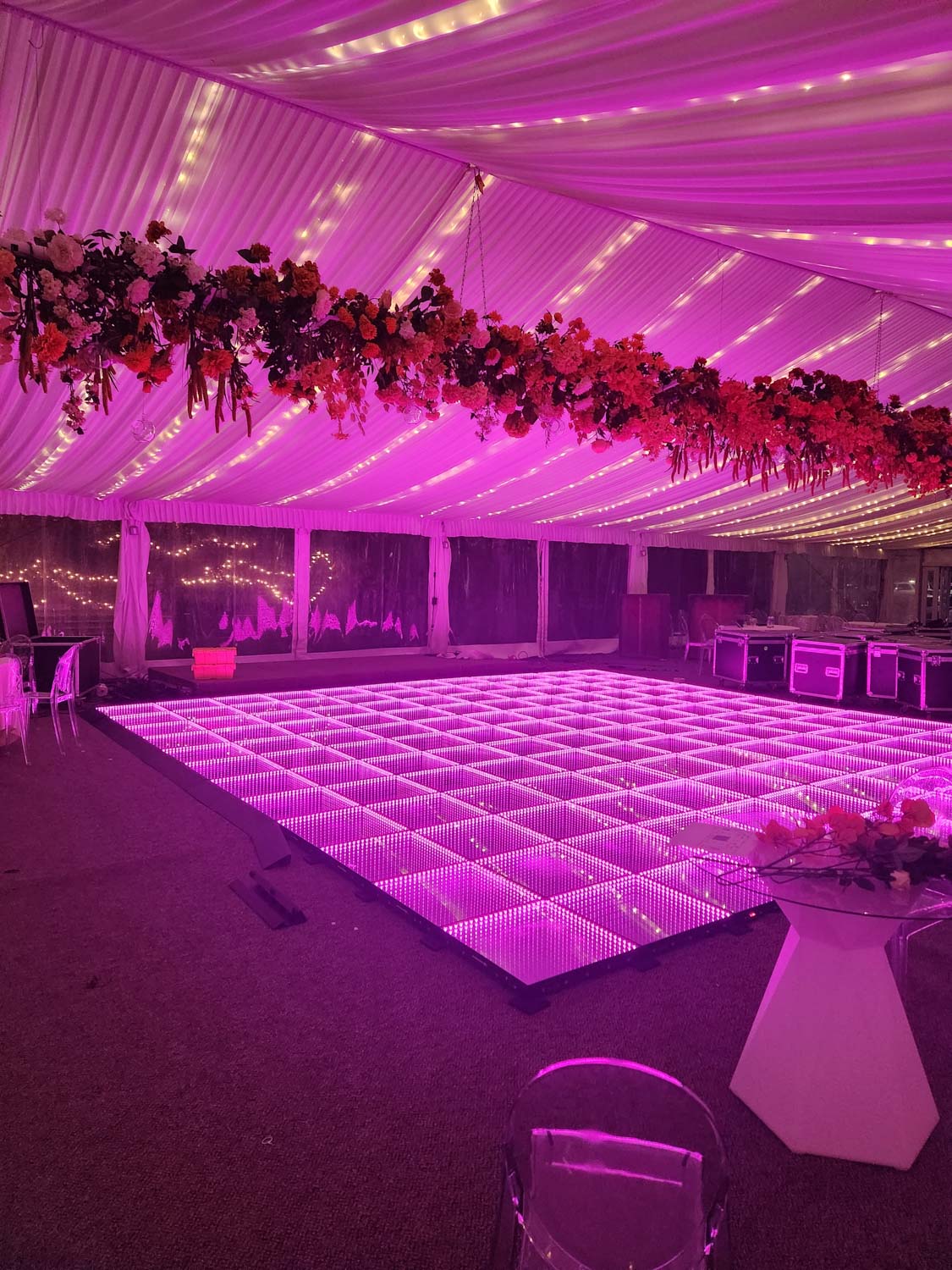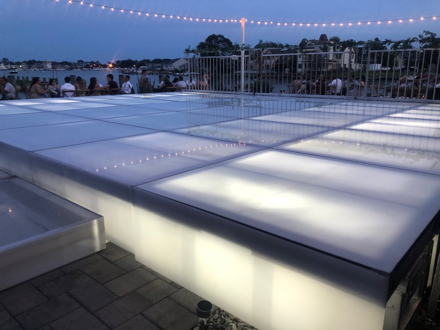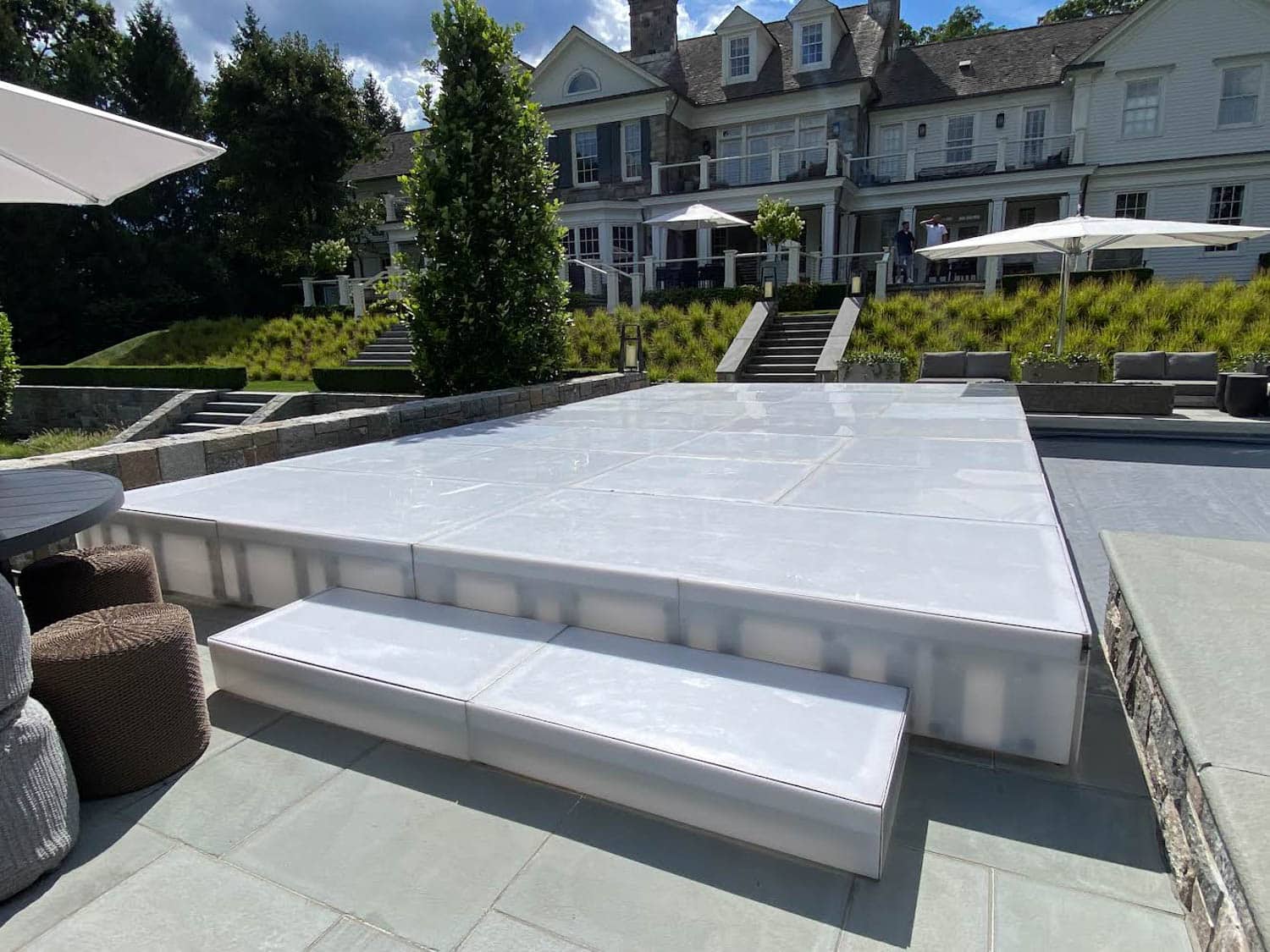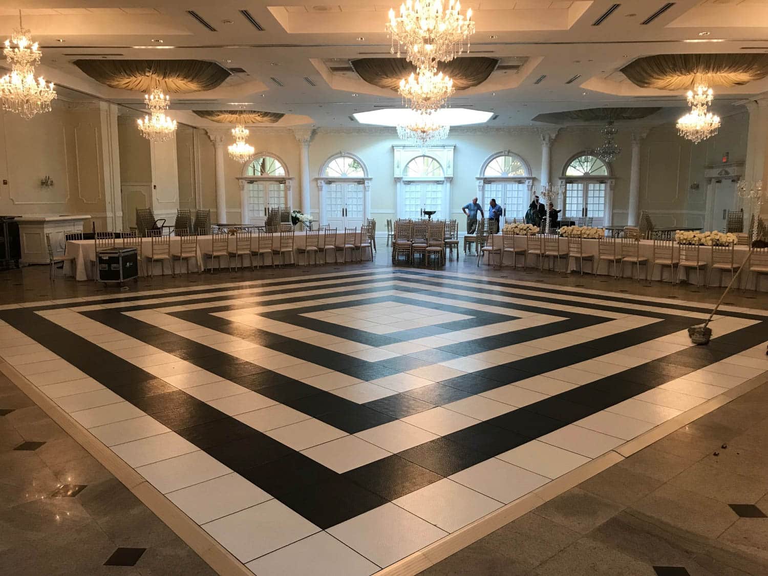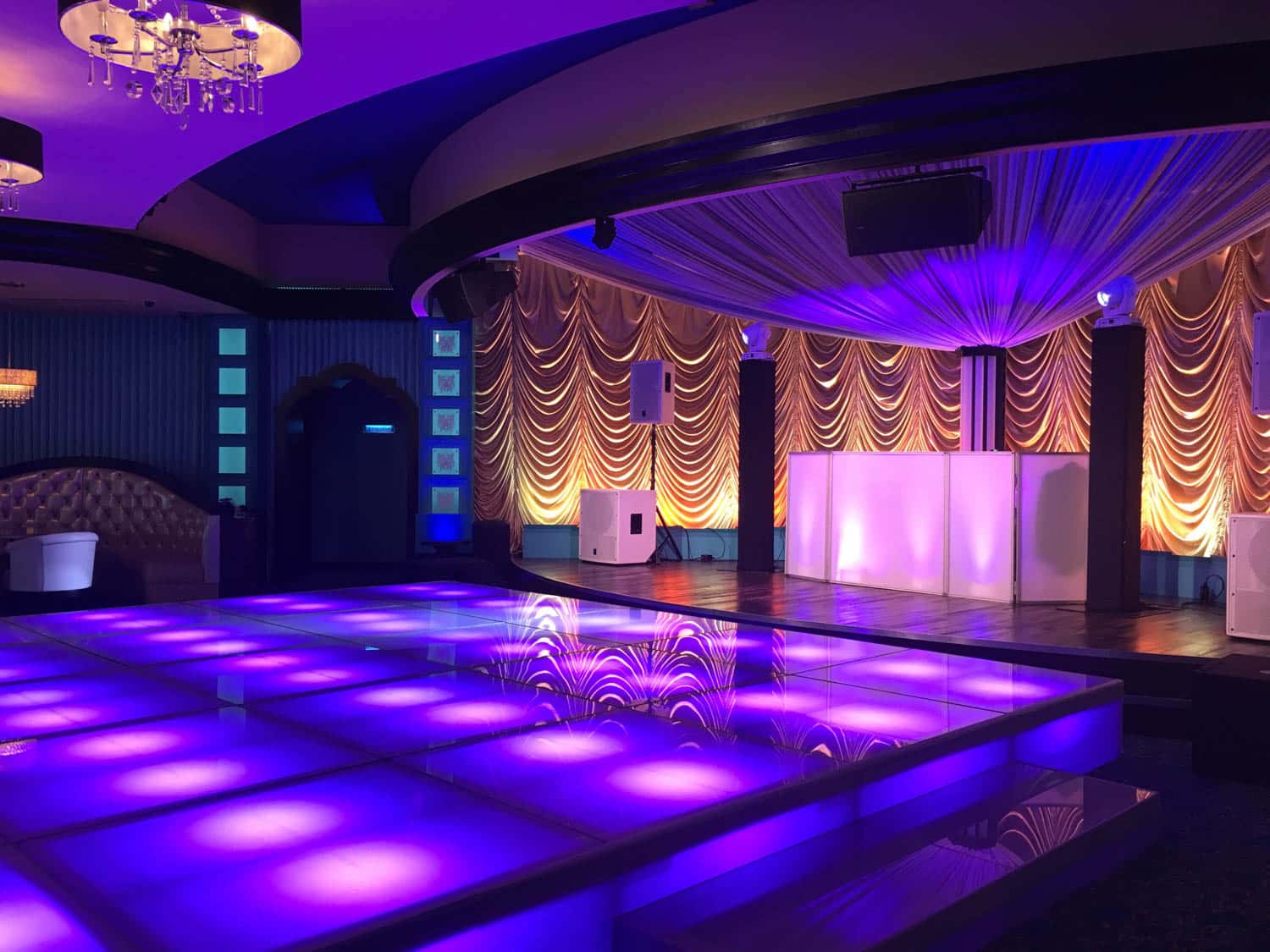 Hart to Hart’s Wedding Dance Floor Rentals create a stunning central focal point for celebrations across NYC, Long Island, NJ and CT. Our selection includes high-gloss white or black floors, parquet options, LED dance floors and fully custom vinyl-wrapped designs featuring monograms, patterns or wedding branding. A beautiful dance floor transforms the room visually while encouraging guests to gather, celebrate and enjoy your reception. We size each floor based on your venue and guest count to ensure optimal comfort and aesthetic balance.
