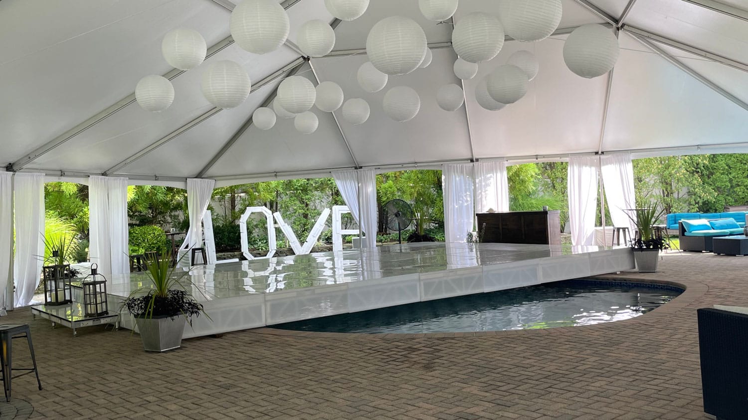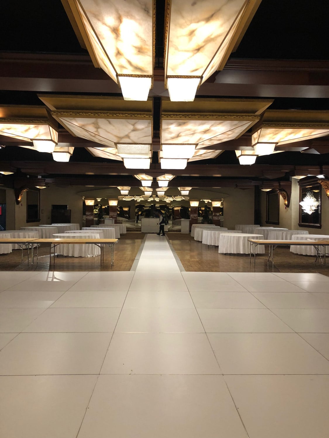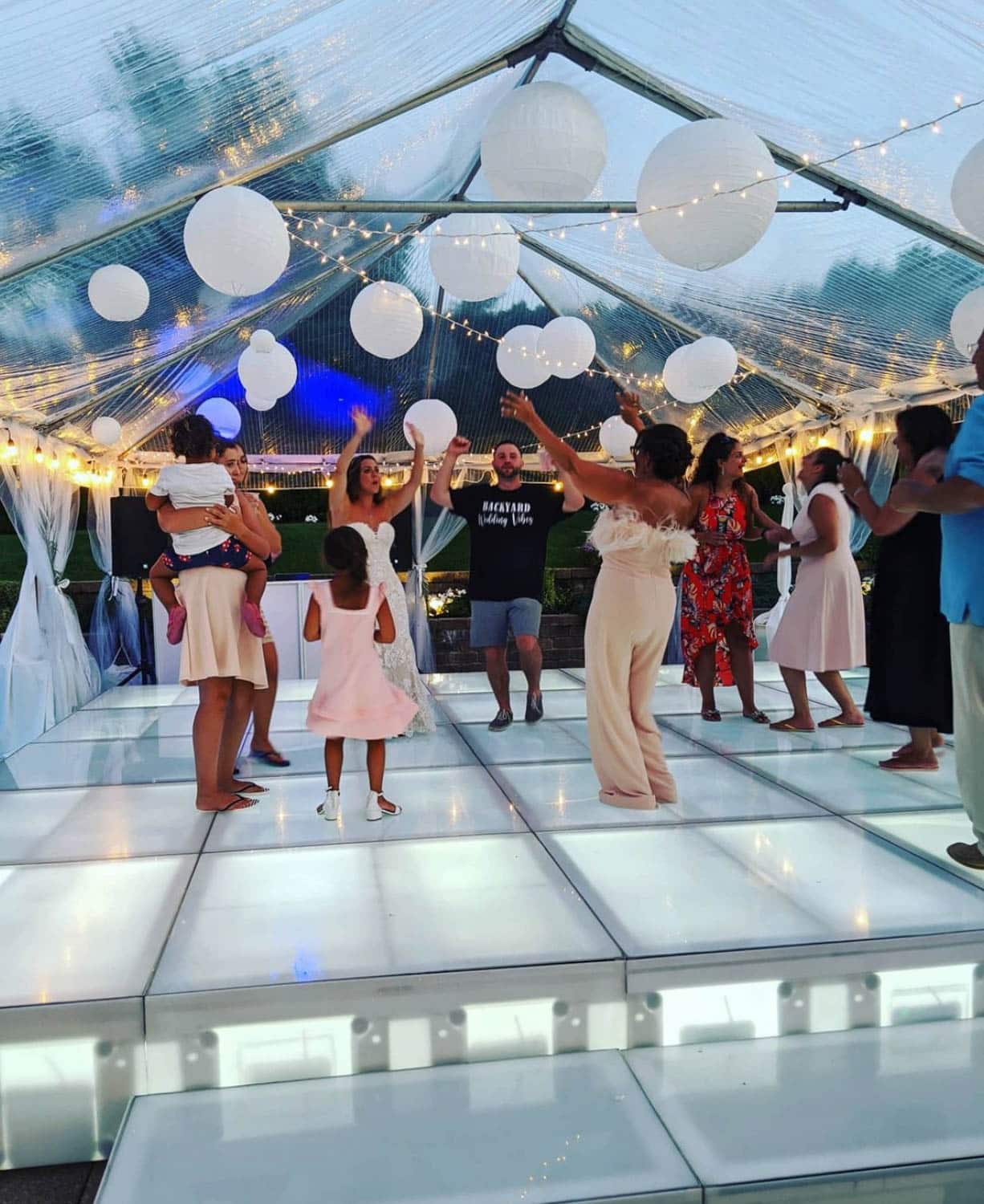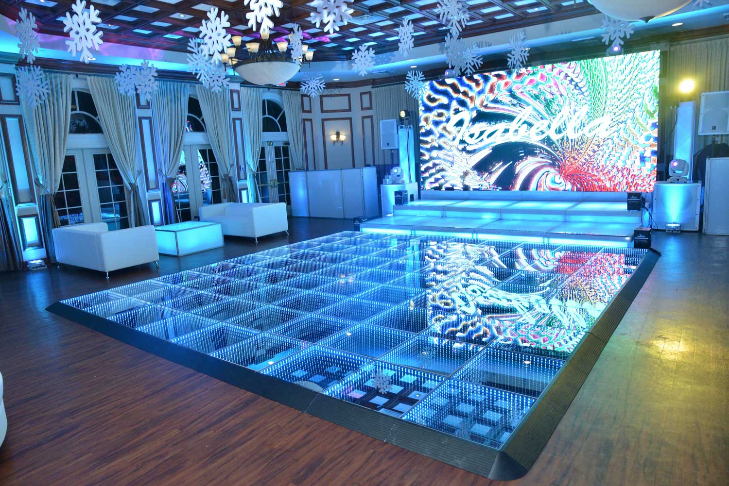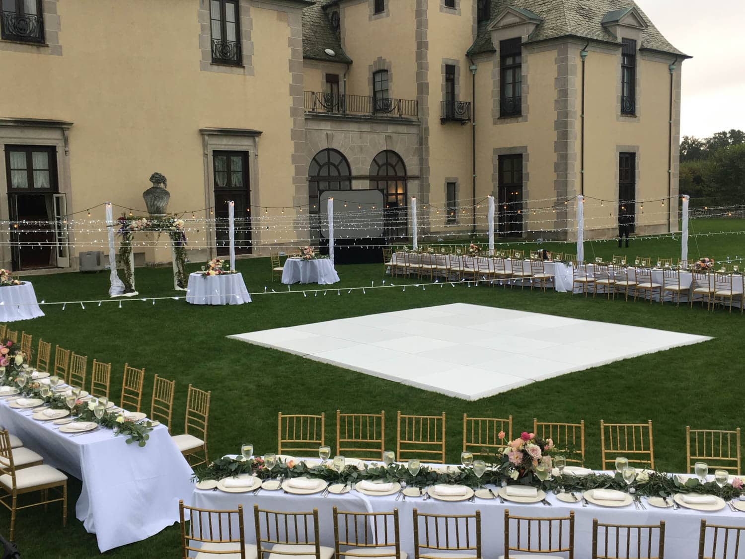 Hart to Hart’s Wedding Dance Floor Rentals create a stunning central focal point for celebrations across NYC, Long Island, NJ and CT. Our selection includes high-gloss white or black floors, parquet options, LED dance floors and fully custom vinyl-wrapped designs featuring monograms, patterns or wedding branding. A beautiful dance floor transforms the room visually while encouraging guests to gather, celebrate and enjoy your reception. We size each floor based on your venue and guest count to ensure optimal comfort and aesthetic balance.