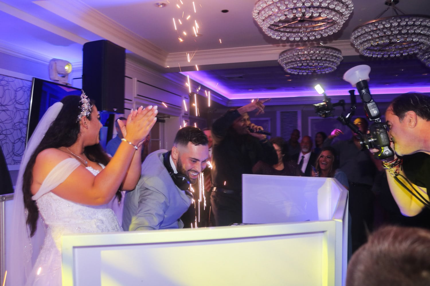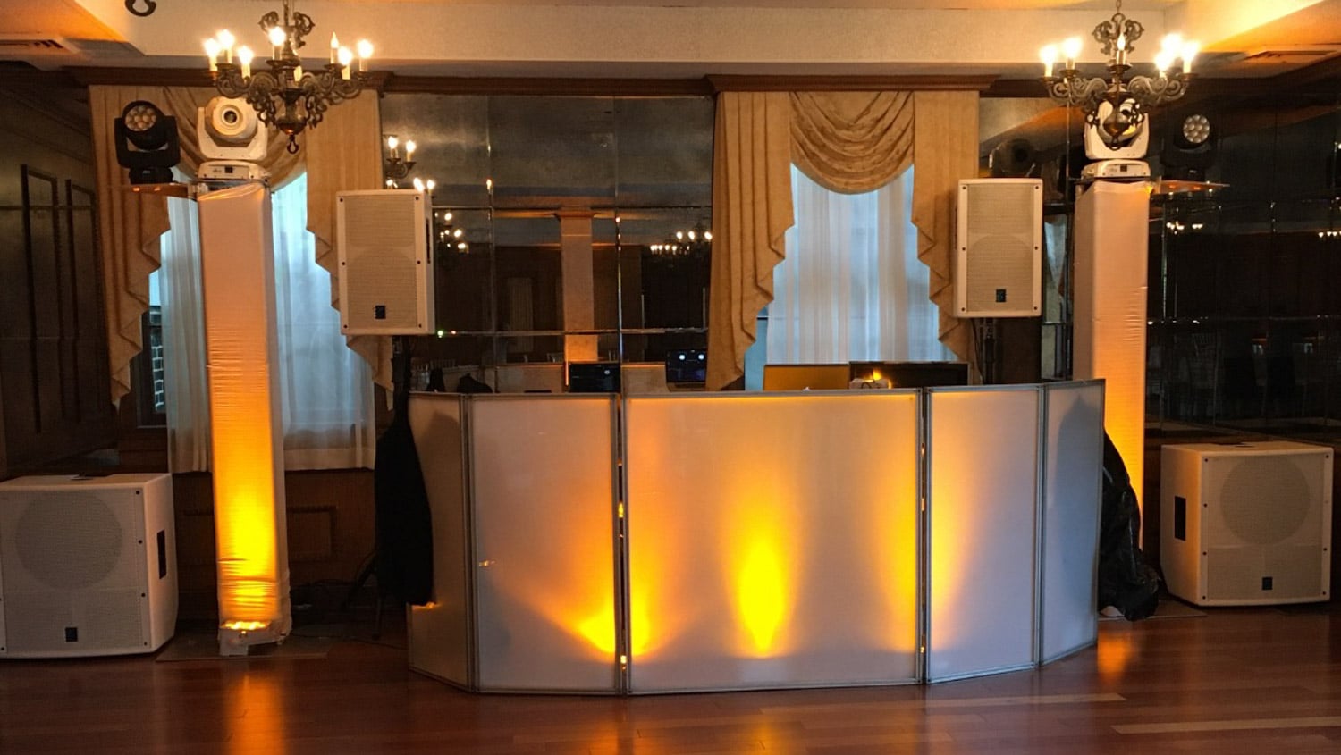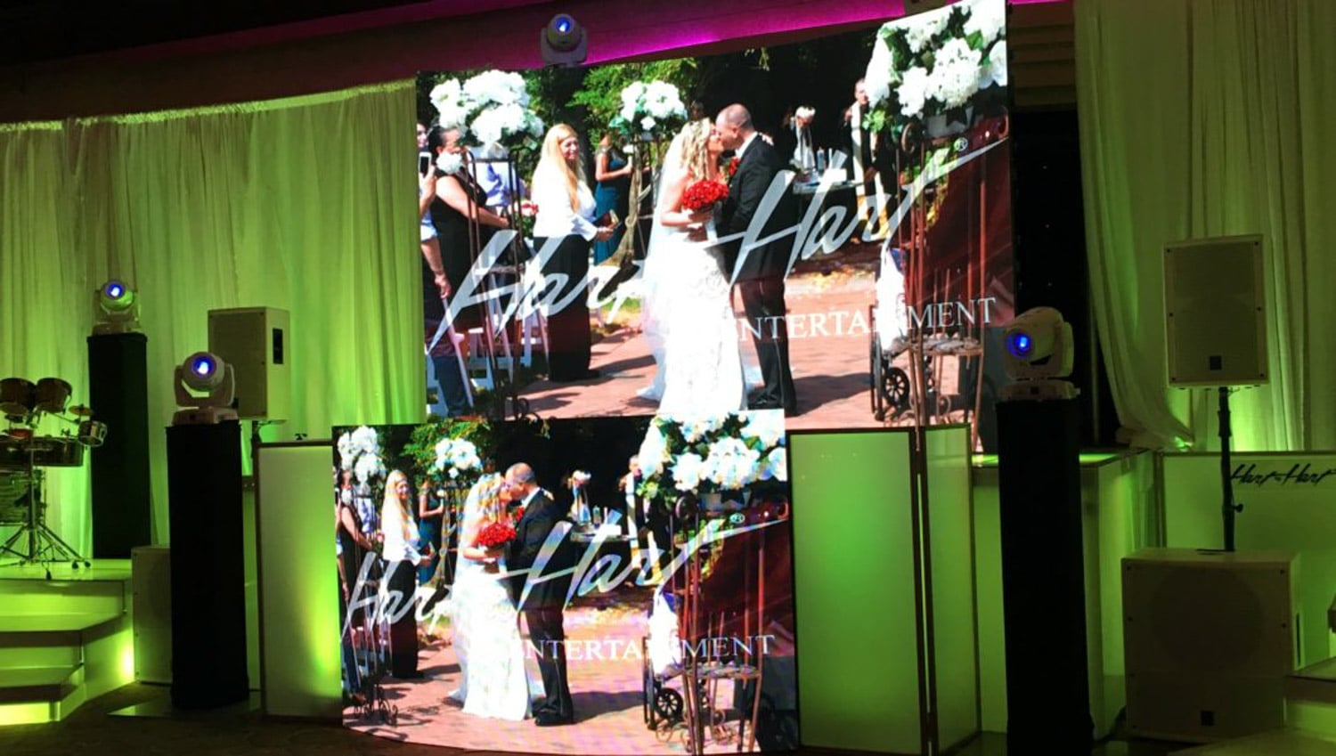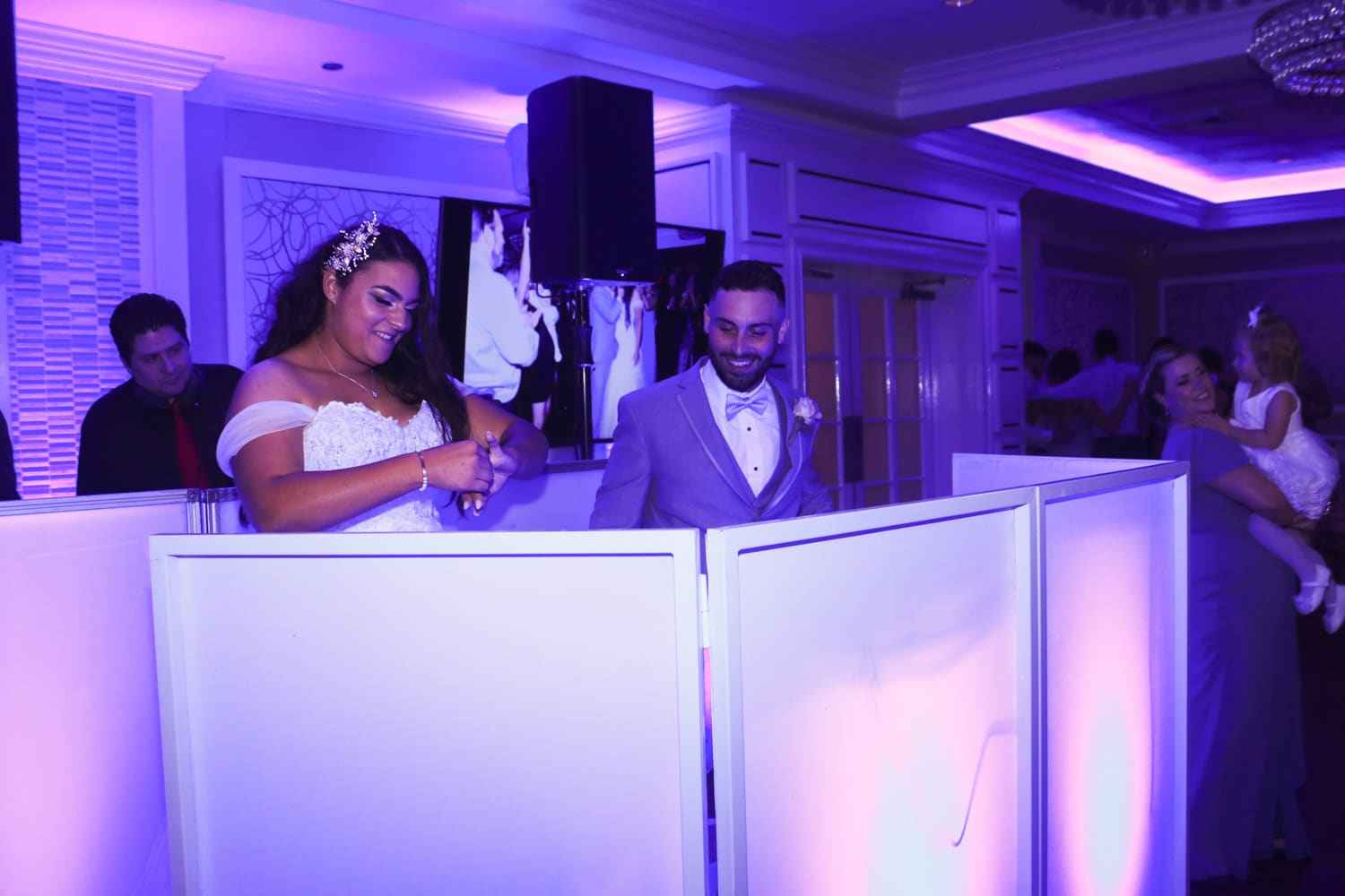 Hart to Hart’s Wedding DJ Booth Options provide stylish, modern and visually cohesive setups designed to enhance your wedding across NYC, Long Island, NJ and CT. Our booth selections include elegant white façades, sleek black panels, LED-illuminated designs and fully branded or custom-wrapped options to match your décor. Beyond aesthetics, each booth offers professional functionality that keeps equipment discreet and ensures your entertainment area looks polished in photos and videos. Whether your style is classic, contemporary or glamour-focused, we provide booth options that elevate the entire room’s presentation.