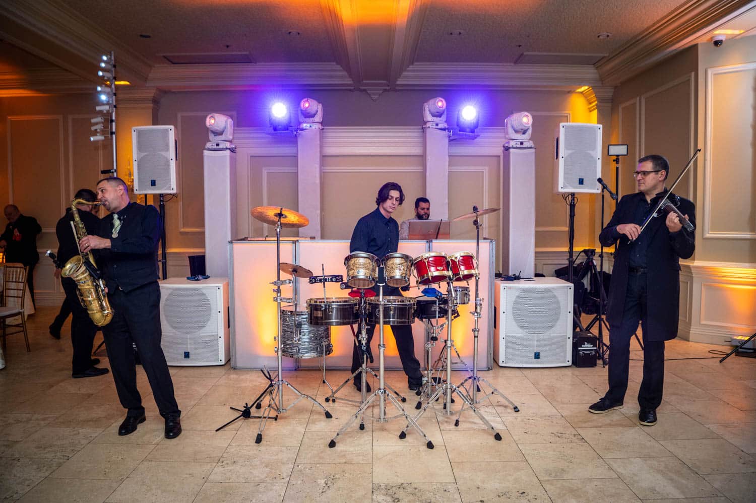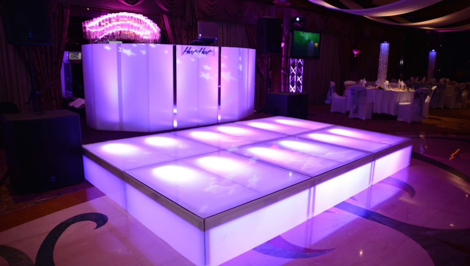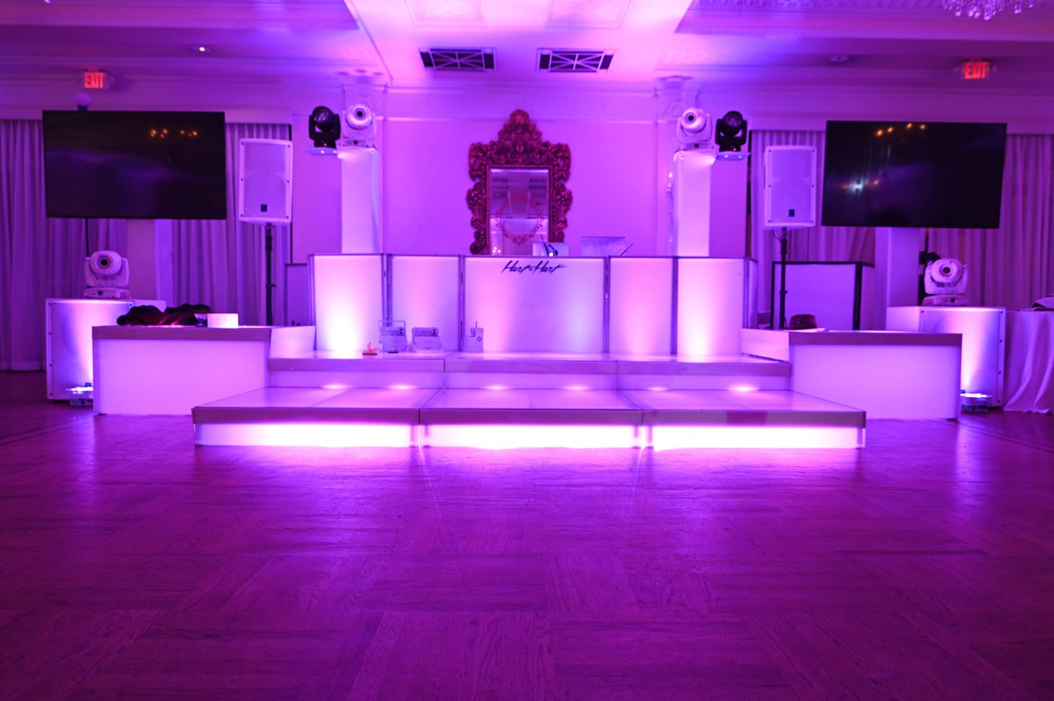 Our DJ booths integrate seamlessly with lighting, staging and sound, helping create a clean and intentional centerpiece for your entertainment. Hart to Hart manages delivery, setup and breakdown with precision, ensuring the booth is perfectly aligned with your layout and décor. Whether you want a minimalist look or a bold visual statement, our booth options enhance guest experience while supporting flawless DJ performance. With years of wedding expertise across NYC, Long Island, NJ and CT, we help couples create a cohesive atmosphere that feels sophisticated and unforgettable.