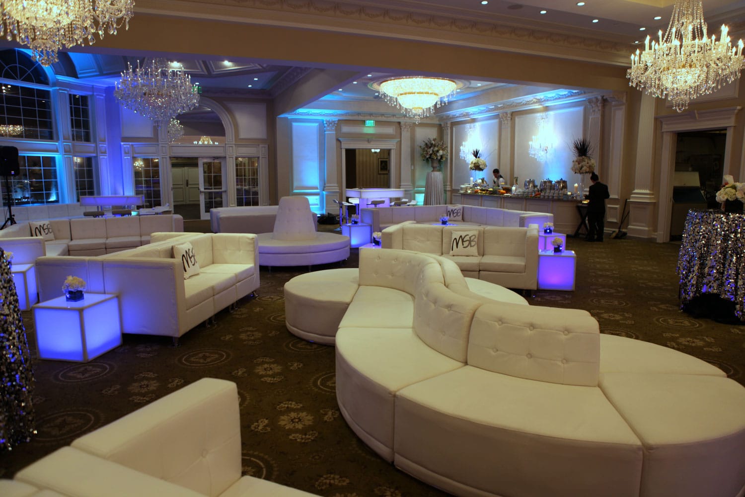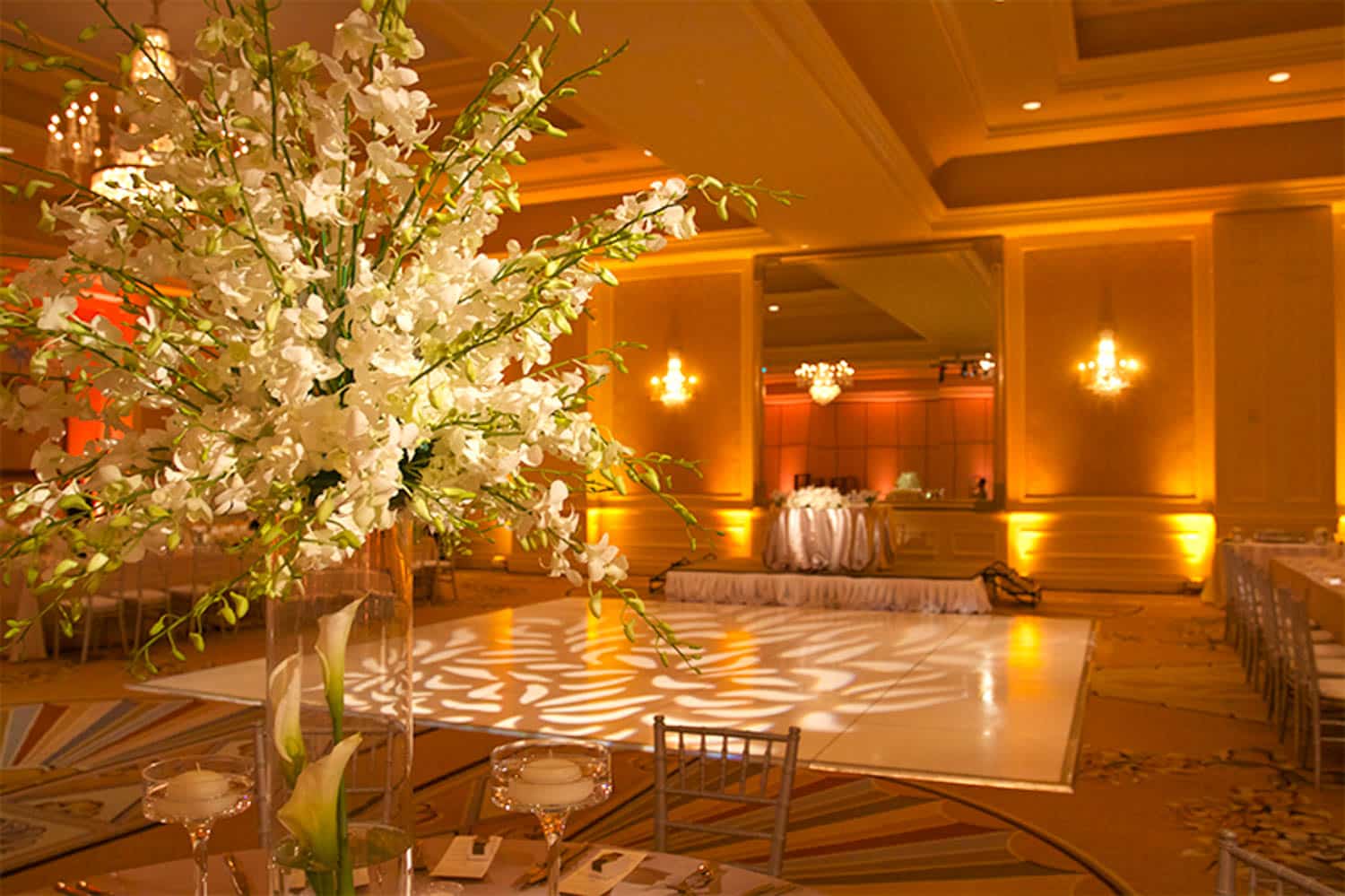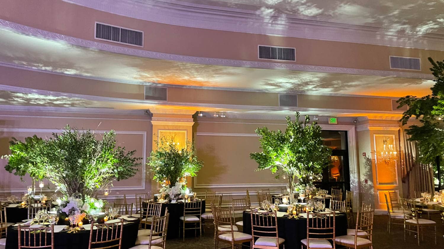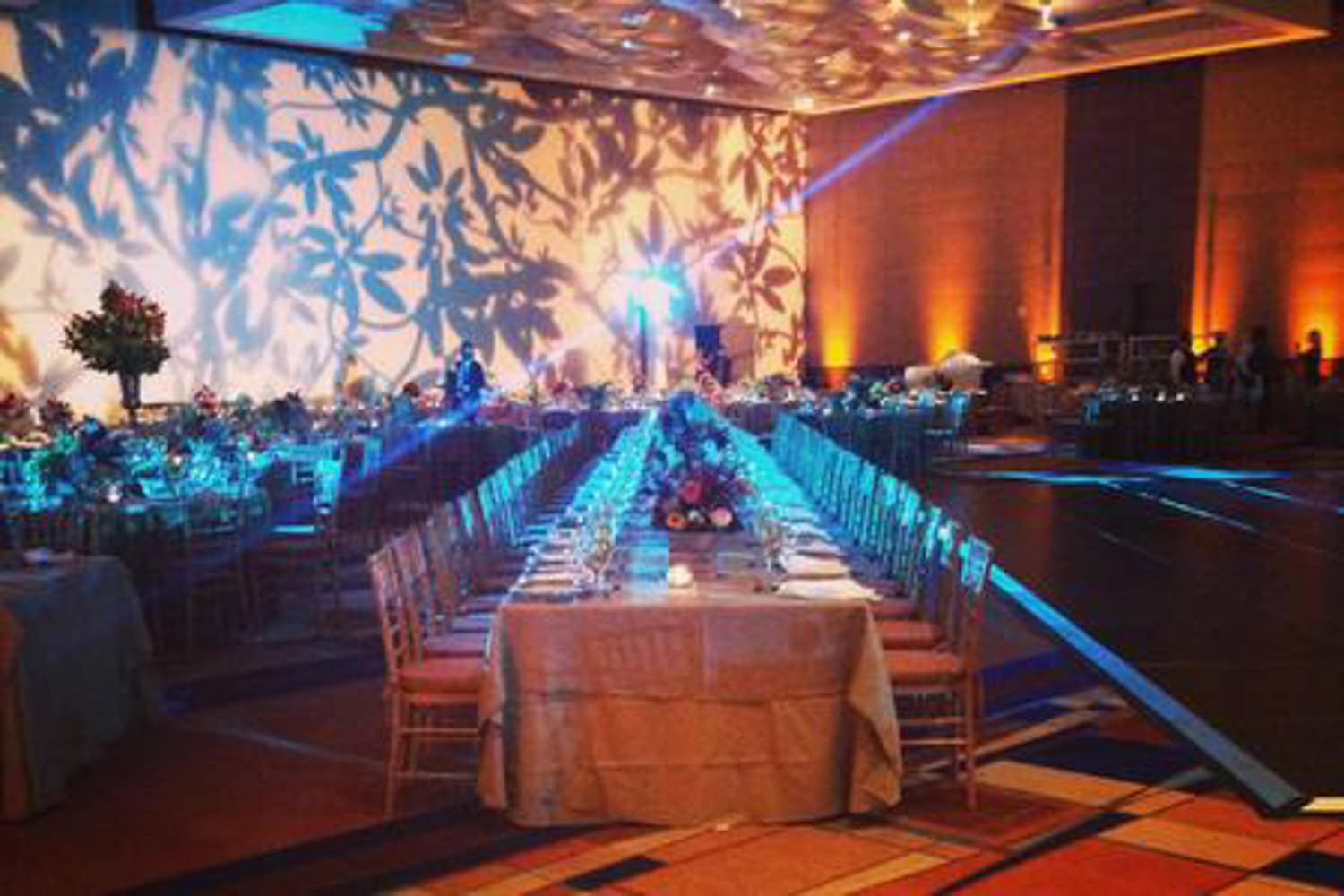 We offer uplighting, color washes, intelligent lighting, spotlights, texture projections, and custom monograms.