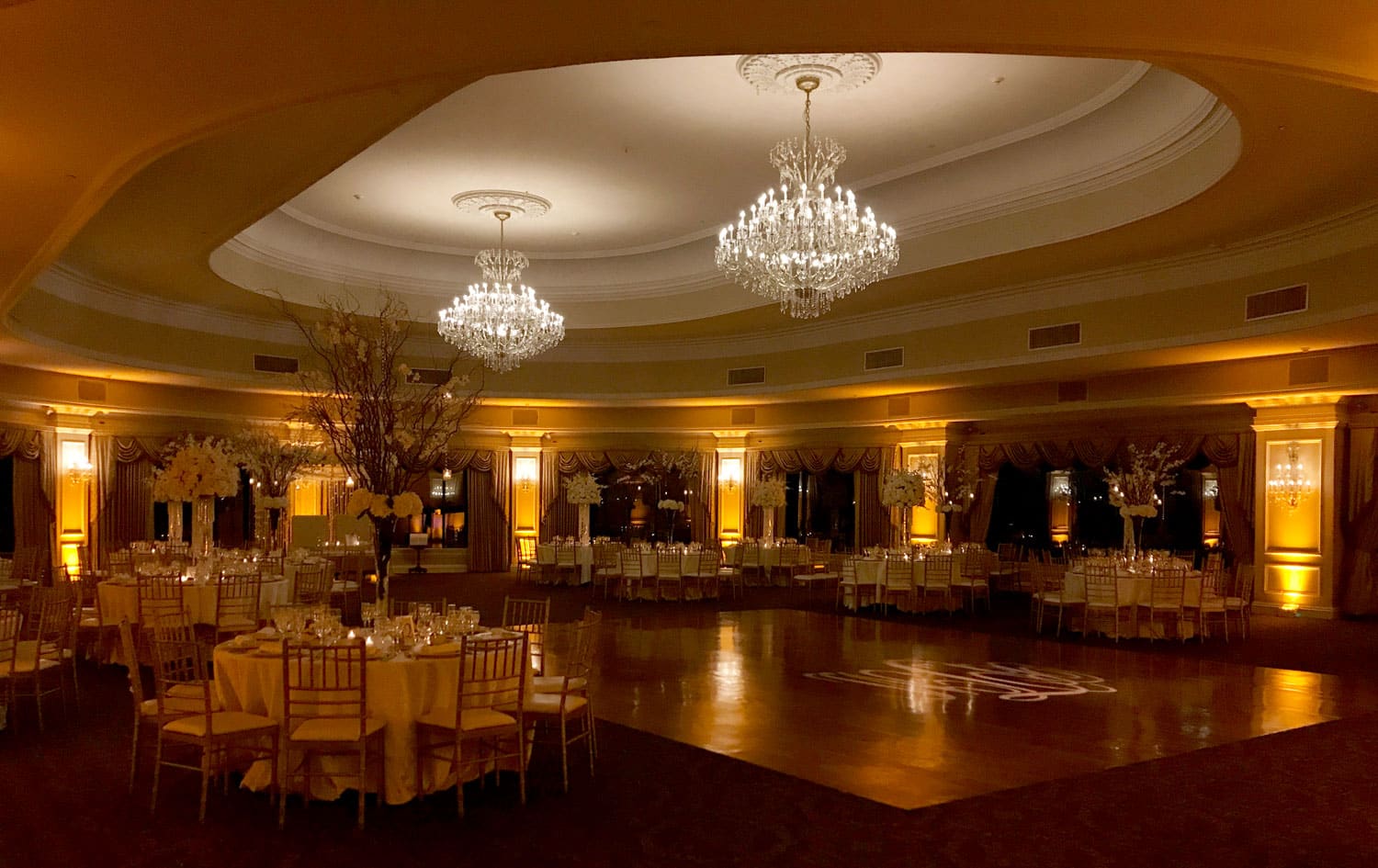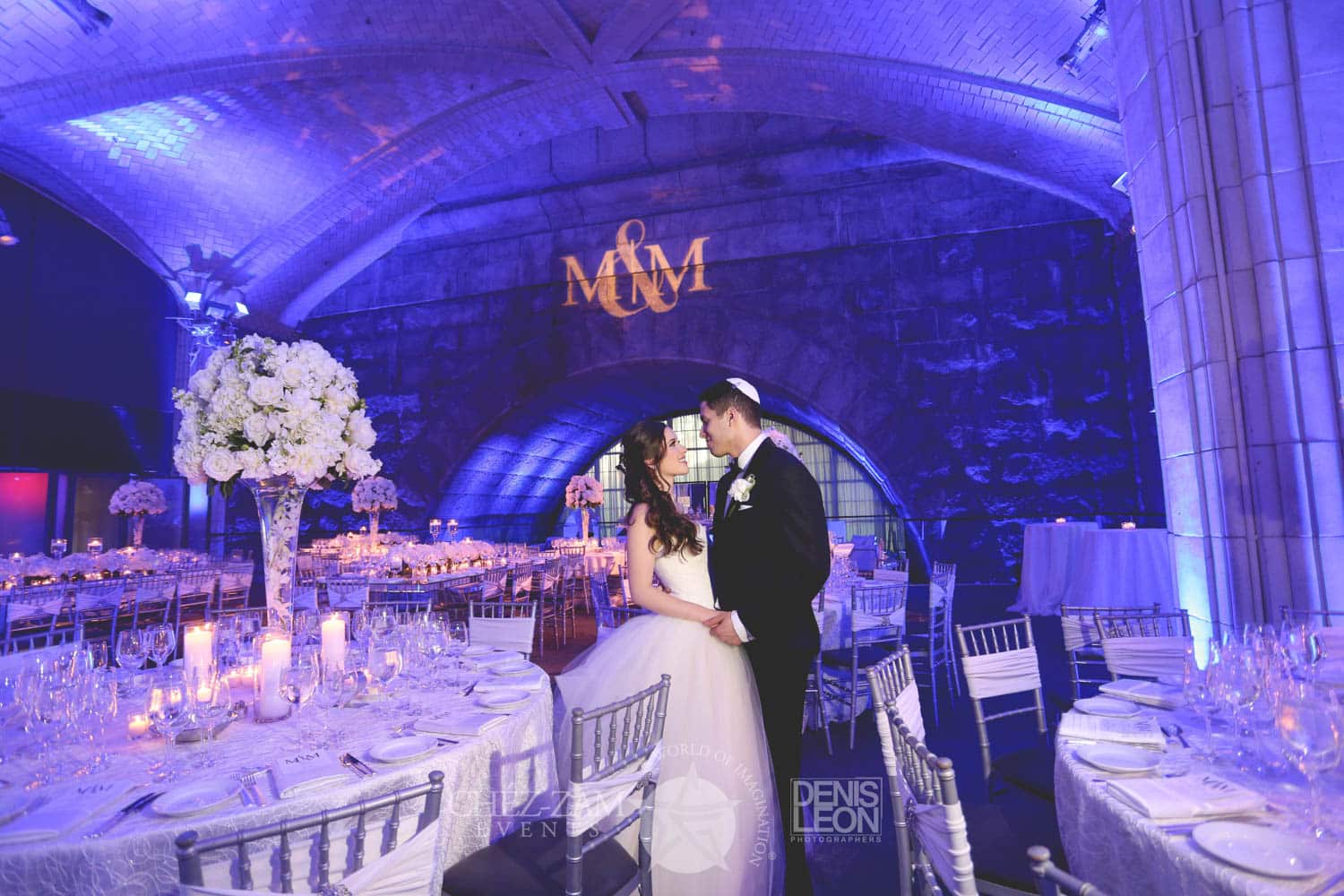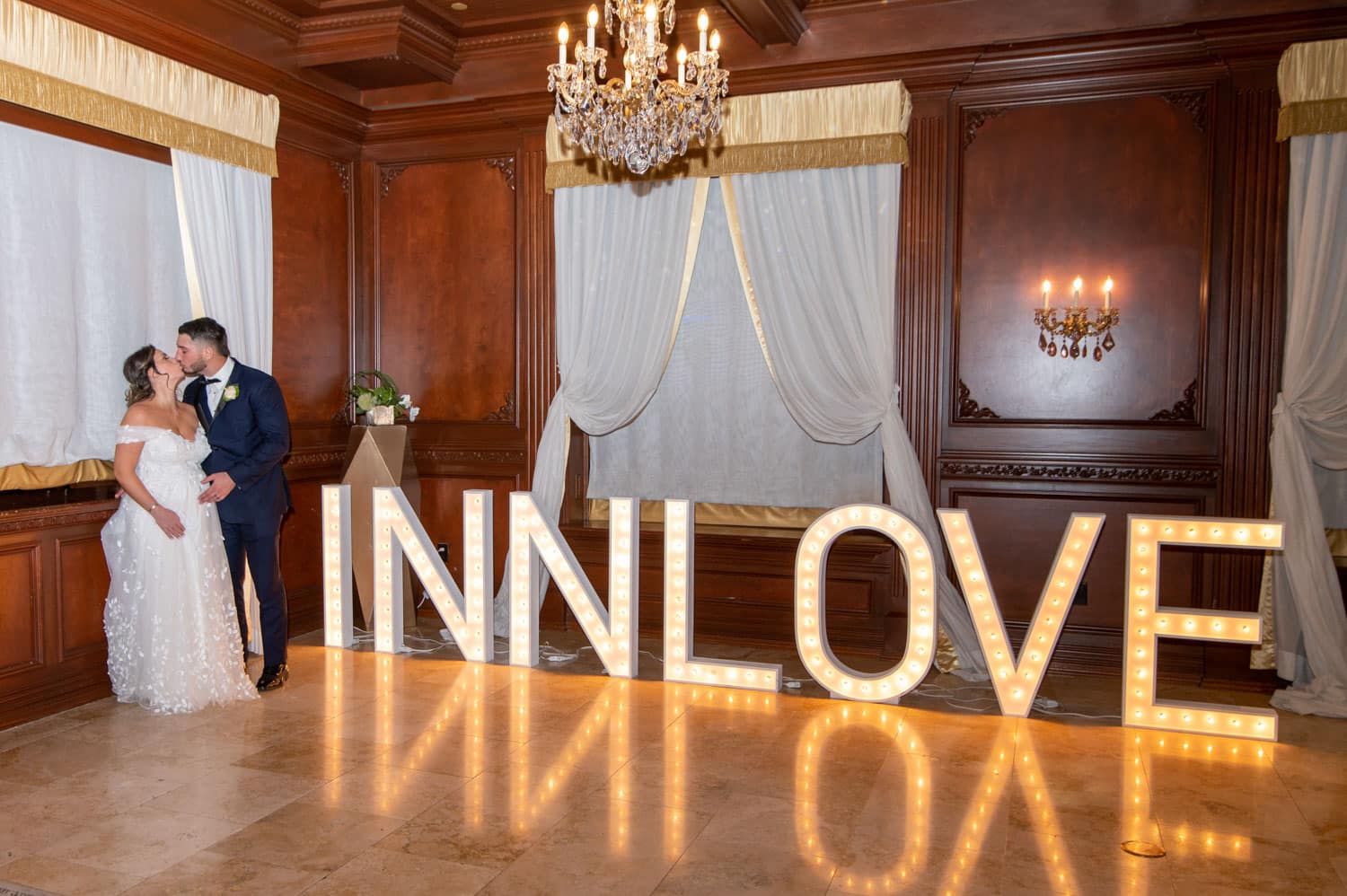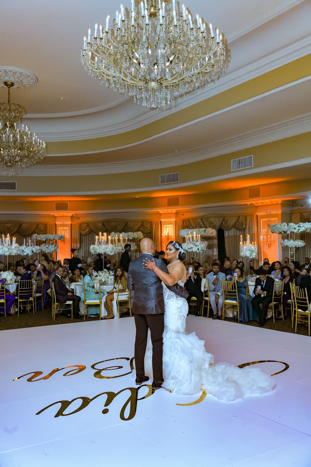 Hart to Hart’s Wedding Lighting Rentals enhance ambiance, elevate décor and bring romantic sophistication to celebrations across NYC, Long Island, NJ and CT. Our lighting options include uplights, intelligent lights, spotlights, color washes, texture projections, chandeliers and custom monogram lighting. Each option is tailored to your venue’s architecture, wedding theme and desired atmosphere. From soft, warm ceremony lighting to dramatic reception transformations, our lighting designers create immersive environments that highlight every moment of your special day.