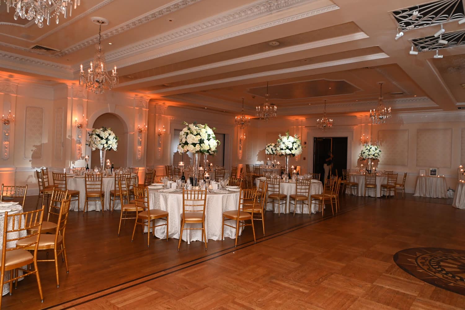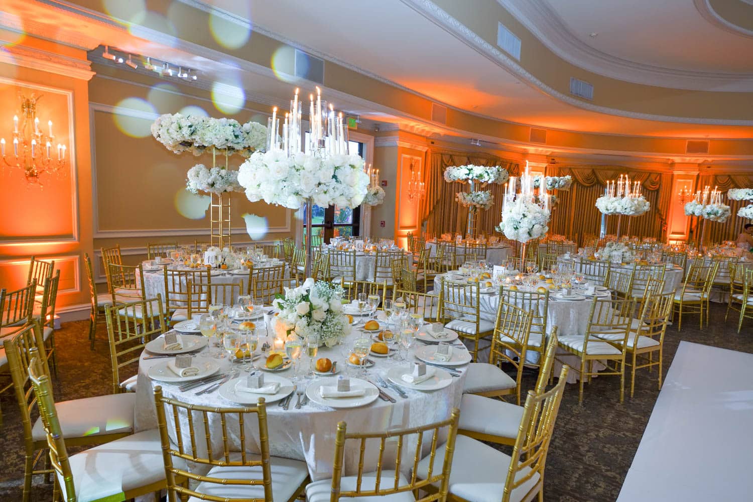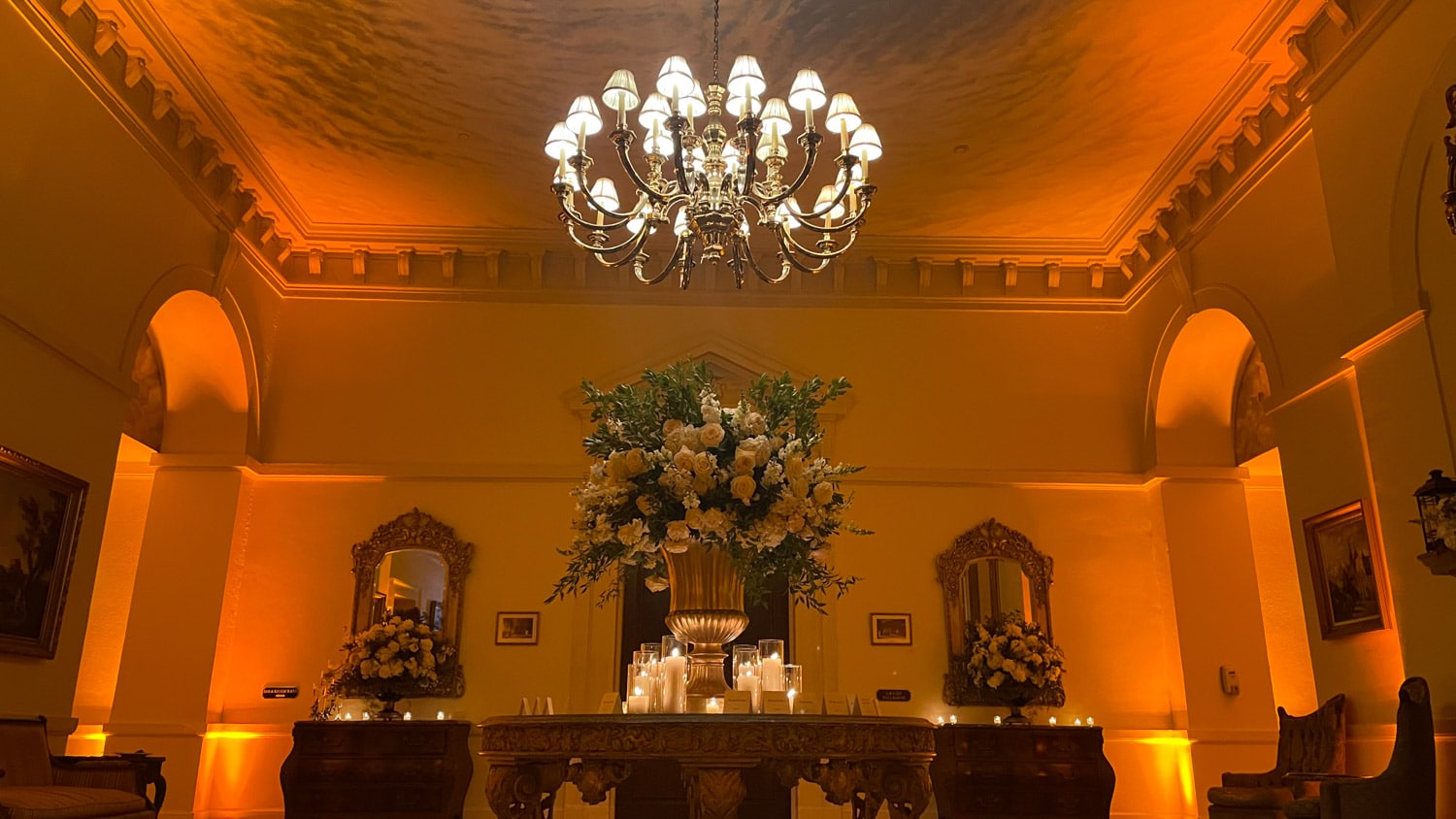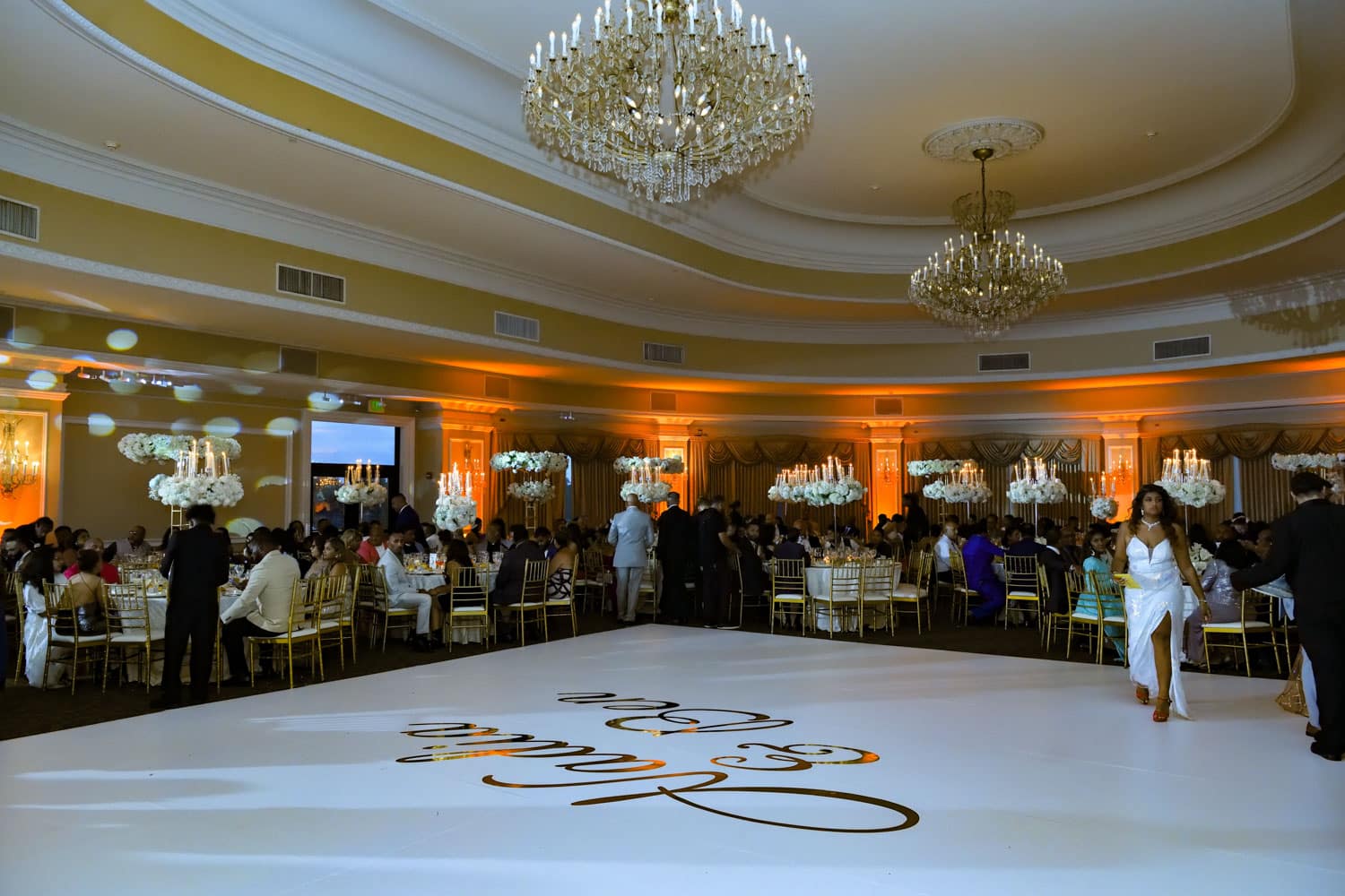 Hart to Hart’s Wedding Lighting Rentals enhance ambiance, elevate décor and bring romantic sophistication to celebrations across NYC, Long Island, NJ and CT. Our lighting options include uplights, intelligent lights, spotlights, color washes, texture projections, chandeliers and custom monogram lighting. Each option is tailored to your venue’s architecture, wedding theme and desired atmosphere. From soft, warm ceremony lighting to dramatic reception transformations, our lighting designers create immersive environments that highlight every moment of your special day.