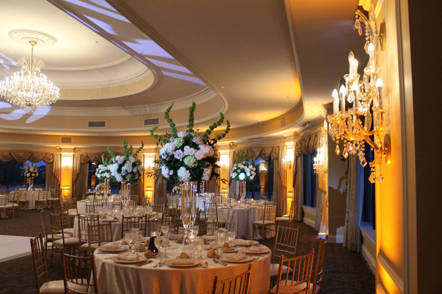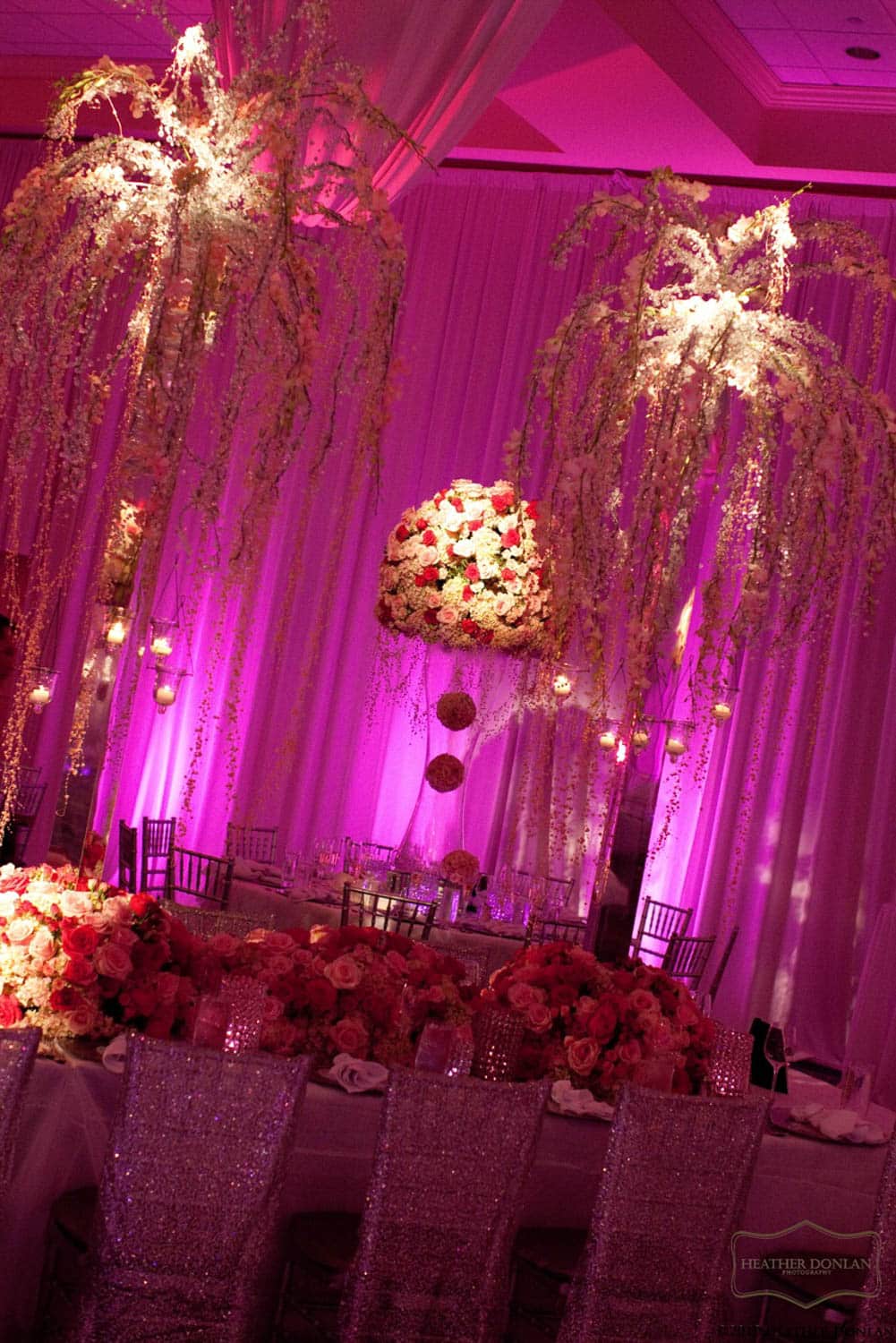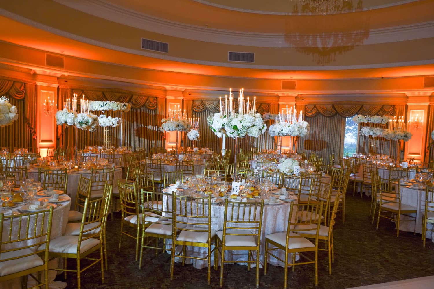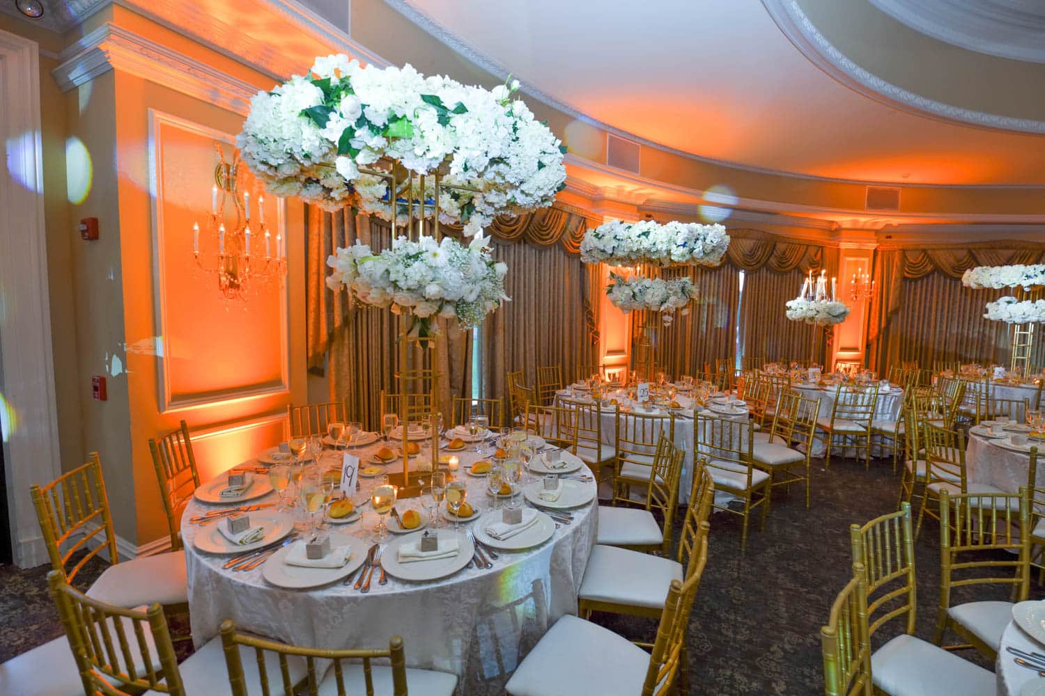 Hart to Hart’s Wedding Lighting Rentals enhance ambiance, elevate décor and bring romantic sophistication to celebrations across NYC, Long Island, NJ and CT. Our lighting options include uplights, intelligent lights, spotlights, color washes, texture projections, chandeliers and custom monogram lighting. Each option is tailored to your venue’s architecture, wedding theme and desired atmosphere. From soft, warm ceremony lighting to dramatic reception transformations, our lighting designers create immersive environments that highlight every moment of your special day.