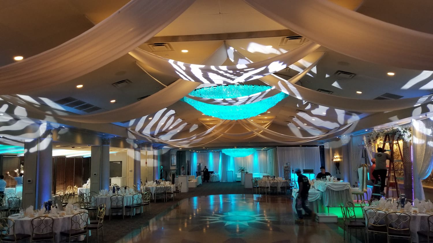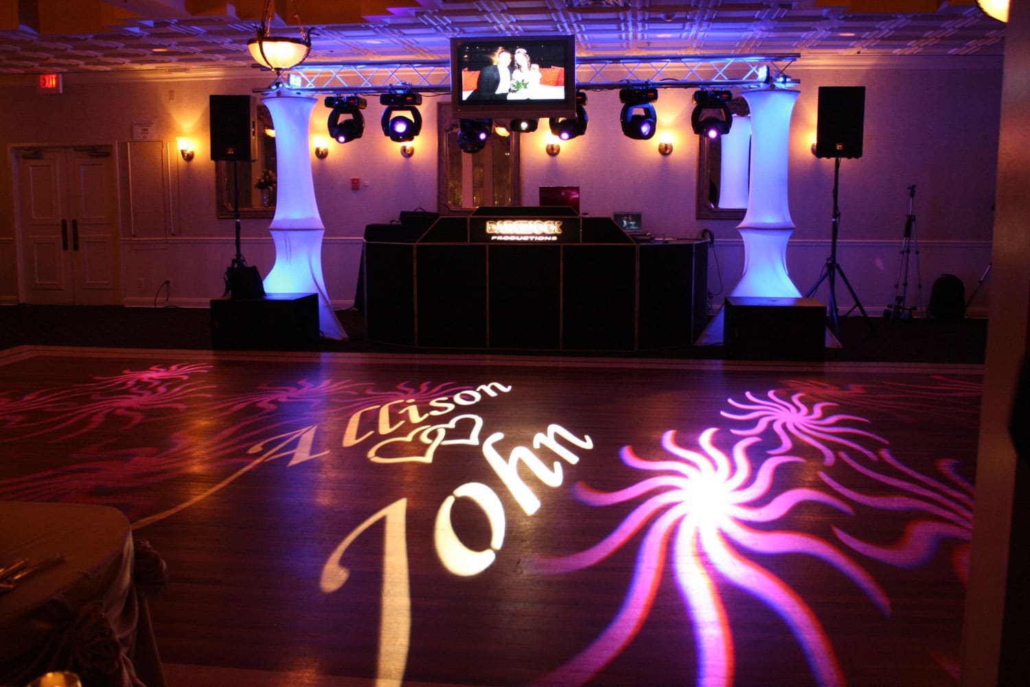Yes—we can project designs onto walls, dance floors, or drapery.
