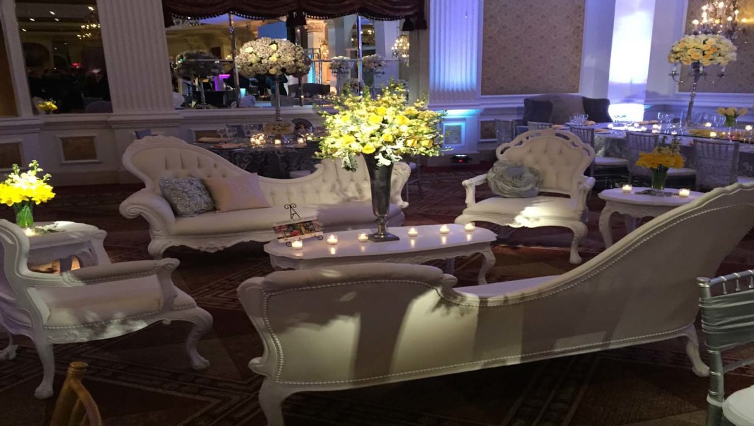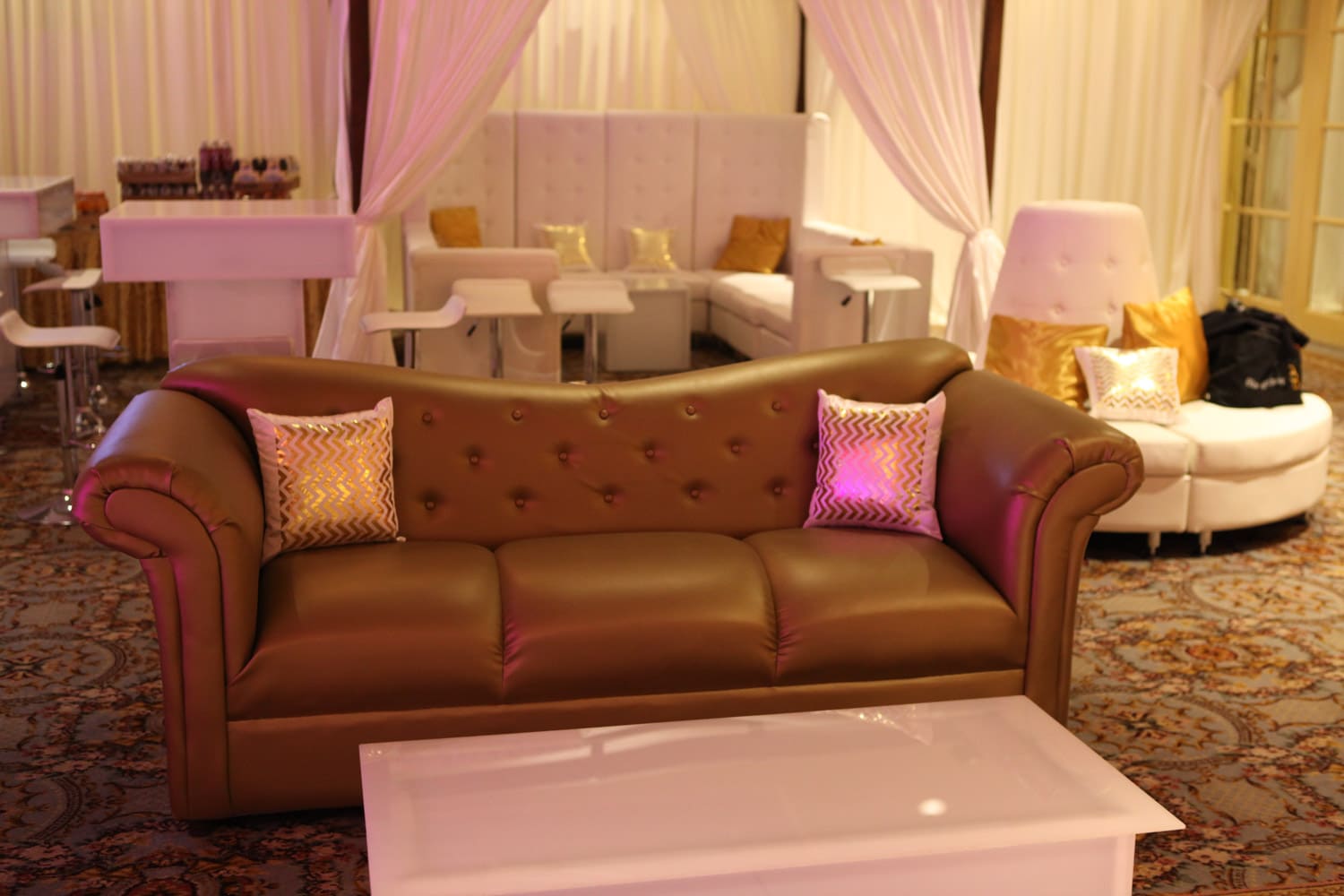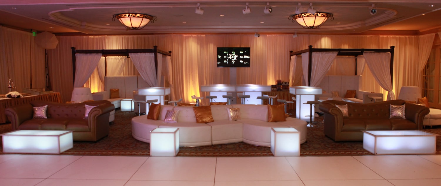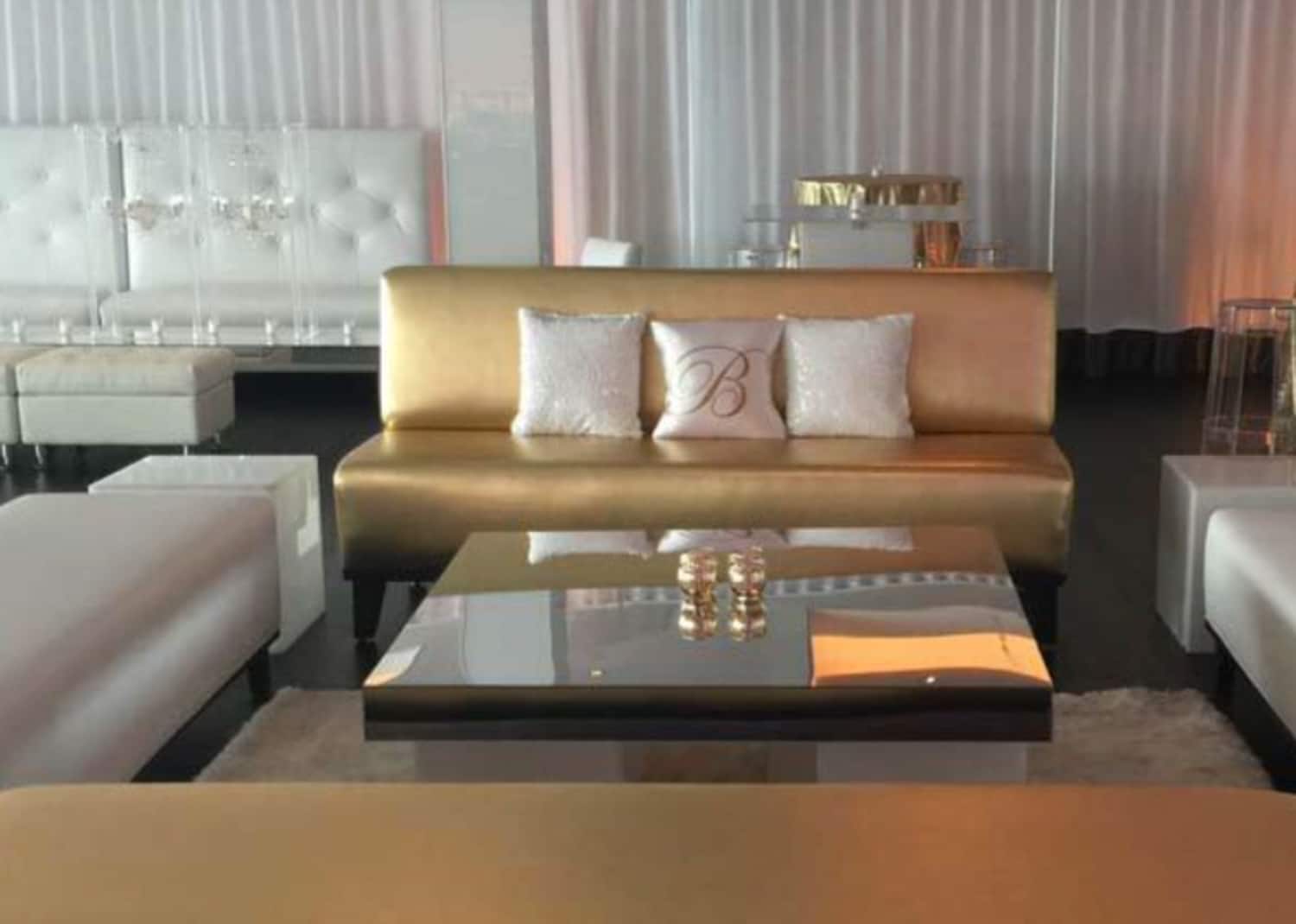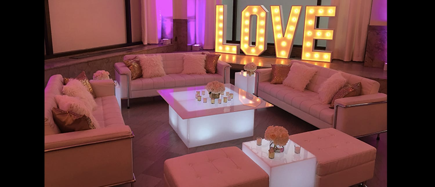 Hart to Hart’s Wedding Lounge Decor creates inviting, sophisticated environments designed to elevate celebrations across NYC, Long Island, NJ and CT. Our curated collections include sofas, chairs, ottomans, accent tables and stylish furnishings that complement any theme—from modern minimalist to romantic vintage. Lounge setups allow guests to relax, socialize and enjoy the event in comfort while adding depth and dimension to your overall design. We tailor each arrangement to your color palette, venue layout and wedding aesthetic, ensuring a cohesive and polished look.